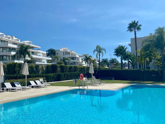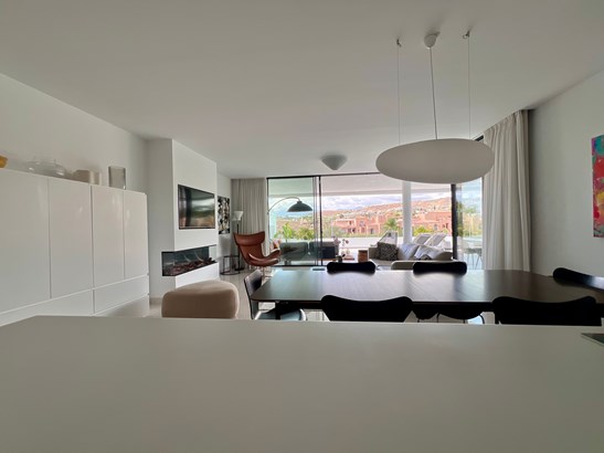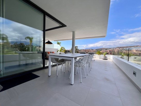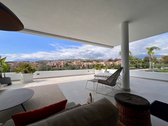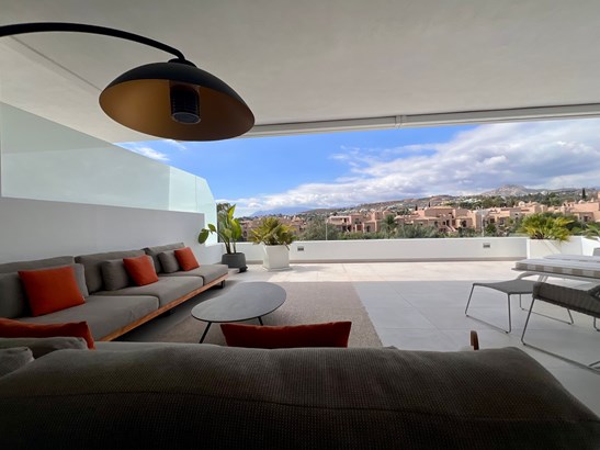 Located in one of the most sought-after areas of Estepona, in the New Golden Mile, the first impression upon entering this impeccable contemporary style apartment in the exclusive Cataleya complex is the sense of spaciousness and brightness of its spaces with elegant and refined lines.The living-dining area is an open space that connects to an open-plan kitchen with high-end appliances and a comfortable layout to simplify daily life and enjoy pleasant evenings with family and friends. The interior space merges with the huge terrace of over 78m² which is incorporated through two large double-glazed sliding doors that open completely creating a perfect space to enjoy the best that Mediterranean lifestyle offers to the most demanding buyer.With an excellent west orientation and on an elevated first floor with spectacular panoramic mountain views, you can enjoy unforgettable sunsets and a captivating landscape both day and night.This is undoubtedly one of the best properties of phase I