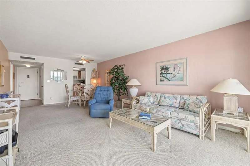 Welcome to Three Palms Pointe, where the beach is literally around the corner and every day feels like vacation. Located on iconic St. Pete Beach, you’re just moments from the Gulf of Mexico plus tons of great local restaurants, shops, live music + waterfront hangouts. This 1-bed and a 2-bath condo (843 sq ft) delivers wide WESTERN exposure from the 6th floor. The great room opens to your private water view balcony through sliding glass doors, and yes you even have hurricane shutters. The kitchen has been updated with granite counters and cabinets- Light and bright. Primary Suite is generously sized with a vanity area, oversized walk-in closet and ensuite bath with tub/shower. For added convenience, there is a second half bath. Laundry is located on the same floor. Parking + an additional storage unit are assigned with unit 601. Three Palms Pointe community provides residents with a guard-gated entry, heated pool, club room, billiards, fitness center, shuffleboard, bicycle and kayak storage (additional fee), fishing pier, and boat slips rentals available by reservation. Love the beach lifestyle? Then this is where you want to be. Schedule your private showing today — sunsets included.