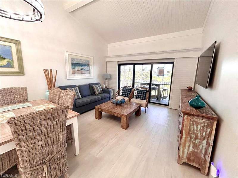 Discover the pinnacle of coastal living in this exquisite 2-bedroom + Loft, 2-bathroom, two-story retreat in South Seas Resort. Nestled along the pristine shores of the Gulf, this beautifully reconfigured condo combines modern elegance with the serene charm of beachfront living. Thoughtful additions include a tankless hot water heater, plank porcelain flooring, and water filtration system throughout enhance the durability. The kitchen is a masterpiece, boasting quartz countertops, high-end stainless steel appliances, under counter lighting, and custom cabinetry accented with premium hardware. The Gulf-front living and dining areas provide a seamless flow, with coastal decor and contemporary recessed lighting adding to the ambiance. Step outside through the impact sliders to the screened patio with panoramic Gulf-front views! Ascend the staircase to the loft, a space designed for flexibility. The upper level primary features high and bright ceilings, coastal furnishings, a vanity with a backlit mirror. Both bathrooms boast floor-to-ceiling tile showers and quartz vanities with backlit mirrors. Every detail of this exceptional residence has been meticulously curated for sophistication, comfort, and effortless Gulf-front living. This is your opportunity to own a premier coastal retreat in one of Captiva's most sought-after locations. A strong producing rental for South Seas!