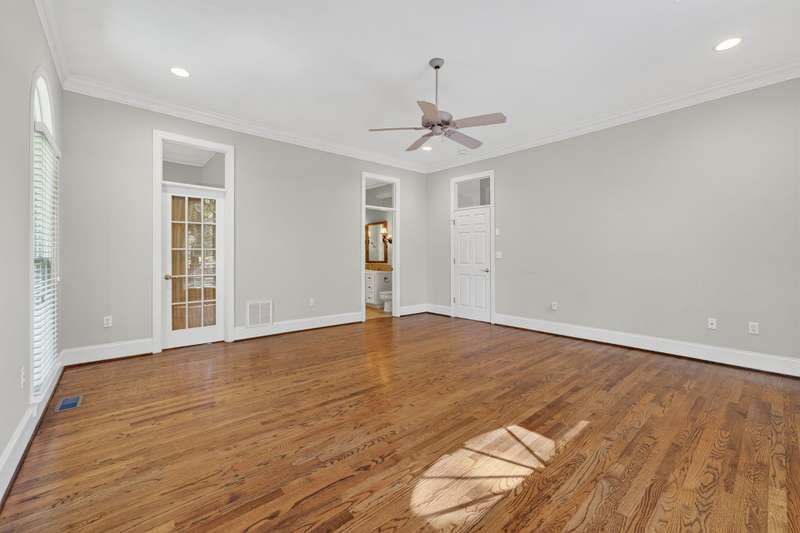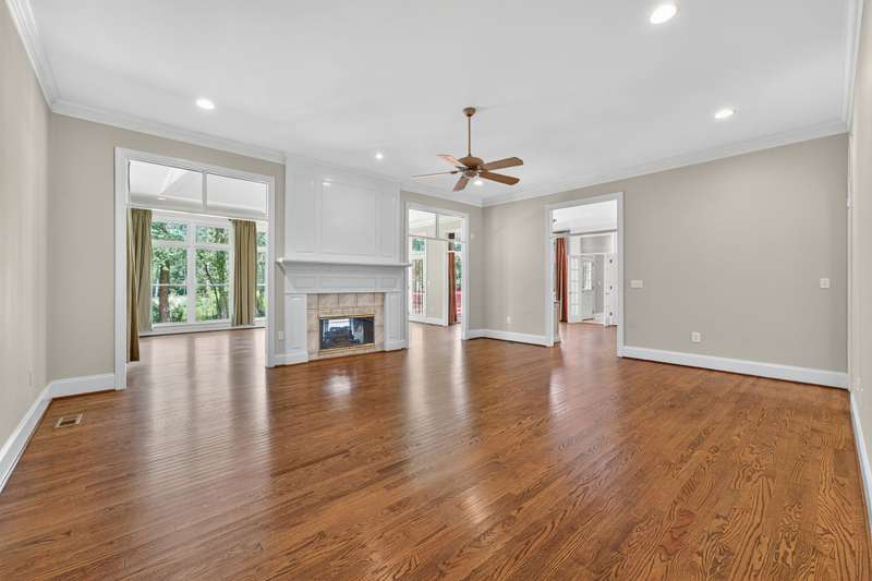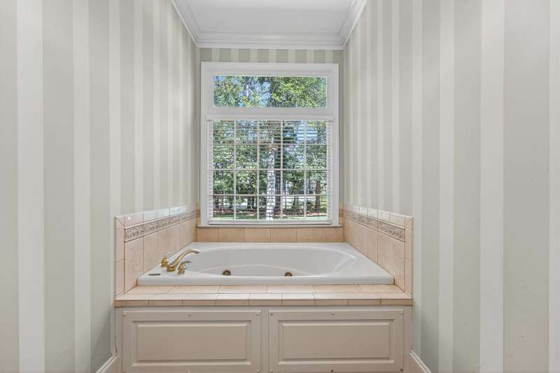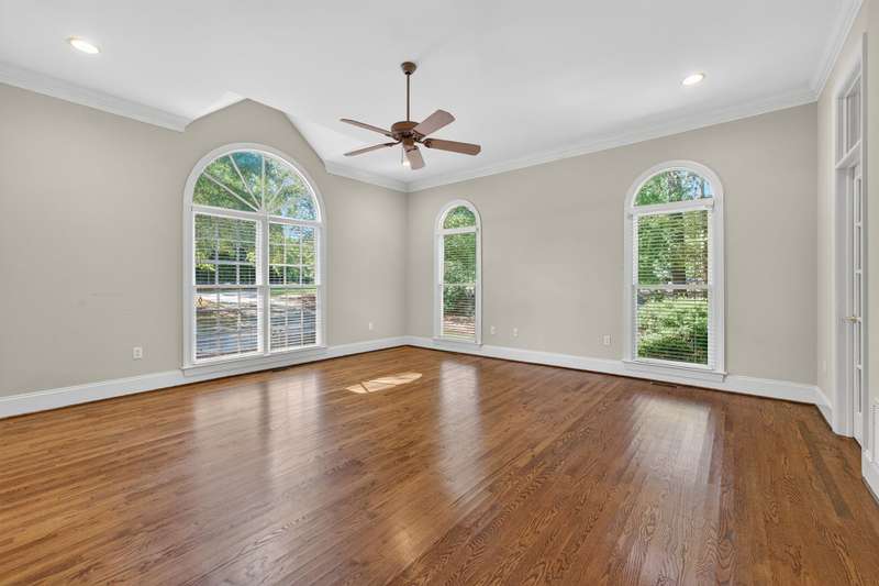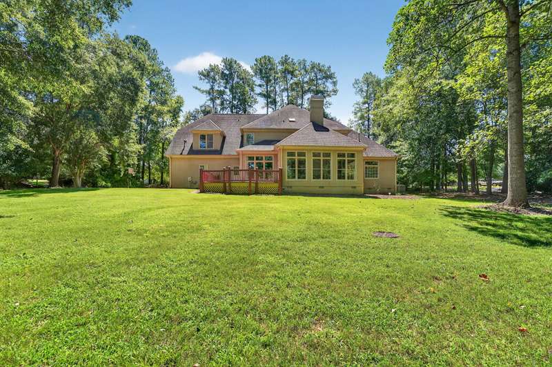 Welcome to refined luxury living in the prestigious Carolina Country Club! Nestled within a gated and 24/7 guarded community, this exceptional 5-bedroom, 4.5-bath estate offers over 5,000 square feet of timeless elegance, perfectly positioned along the 13th hole of the golf course. Step inside and be greeted by gleaming hardwood floors and a grand, open layout. To your right, a stately dining room easily accommodates 12+ guests, ideal for hosting unforgettable dinner parties. To the left, a cozy den offers the perfect setting for a private library or your Baby Grand piano. The heart of the home unfolds in the spacious living room, where a double-sided fireplace connects seamlessly to the light-filled sunroom. With soaring ceilings and walls of windows, the sunroom opens to a deck that overlooks the rolling fairways?an ideal backdrop for entertaining or quiet relaxation. The expansive kitchen is a chef's dream, featuring granite countertops, stainless steel appliances, abundant cabinetry, and generous prep space for all your culinary creations. The main-level primary suite is a true retreat, complete with dual walk-in closets and separate his-and-hers bathrooms for the ultimate in comfort and privacy. Upstairs, you'll find four additional bedrooms, including two with en suite bathrooms and two sharing a convenient Jack-and-Jill bathroom. An office with built-in bookcases provides the perfect work-from-home environment. Above the extended three-car garage, a spacious recreation room awaits?perfect for a pool table, game nights, or a workout studio. A set of back stairs offers easy access to the kitchen and rear entry, enhancing the home's thoughtful design. Living here means more than owning a beautiful home?it's a lifestyle. Enjoy golf, tennis, pickleball, swimming, fine dining at the Clubhouse, wine tastings, and a vibrant social calendar?all within your own neighborhood. This immaculate property combines classic sophistication with modern comfort, making it a rare opportunity in one of the area's most sought-after communities. Schedule your private tour today and experience Carolina Country Club living at its finest!