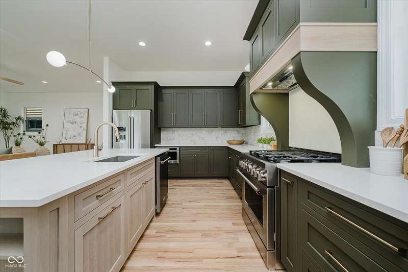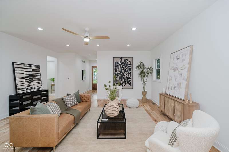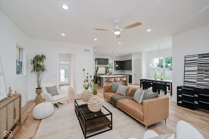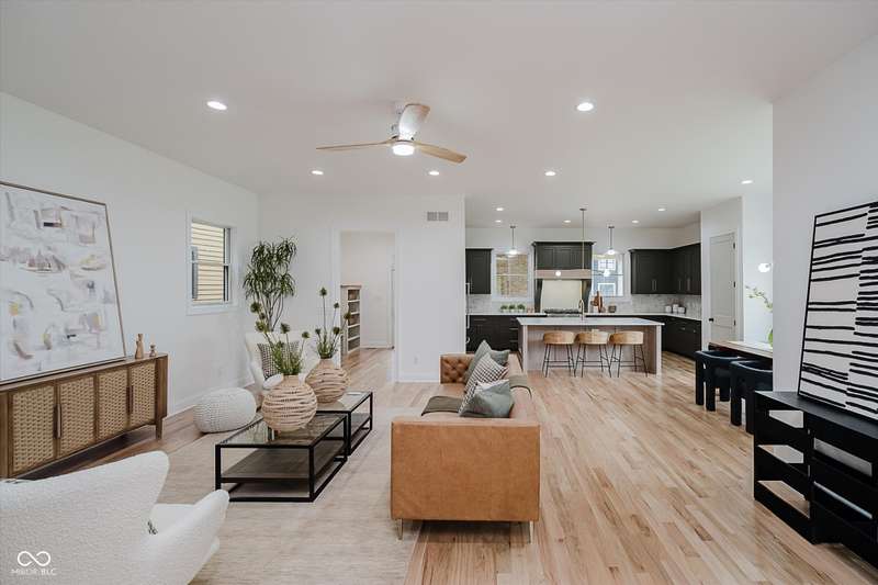 Welcome home to quality construction and design in this new construction Gem! Located in desirable Herron-Morton Place, down the street from several restaurants, breweries, parks, and more- endless walkability for all to enjoy! Indulge in Gather 22 down the street or Baby's, Loco, Mashcraft, or Bocca around the corner, or enjoy staying in with your very own golf simulator and wine cellar! Relax out back on the expansive covered deck, including a wood-burning fireplace, or enjoy city living at its finest on the covered front porch. Step inside to be welcomed by a large foyer for greeting guests, and utilize the main floor bedroom off the front as a private office. Open-concept living and dining rooms spill into the kitchen, flawlessly equipped with custom-Amish cabinetry, expansive island, and professional-grade appliances. Private mudroom off the back provides the ideal storage and drop zones. Upstairs offers three large bedrooms, including a luxurious primary suite, as well as two guest bedrooms, convenient laundry room, and spare bathroom with double vanity. Downstairs in the finished basement, there's something for everyone- large rec area, generously-sized bedroom, full bathroom, storage/utility room, wine cellar, and golf simulator/work out/theatre room! All the extras in this Gem provide the perfect opportunity for downtown living at its finest!