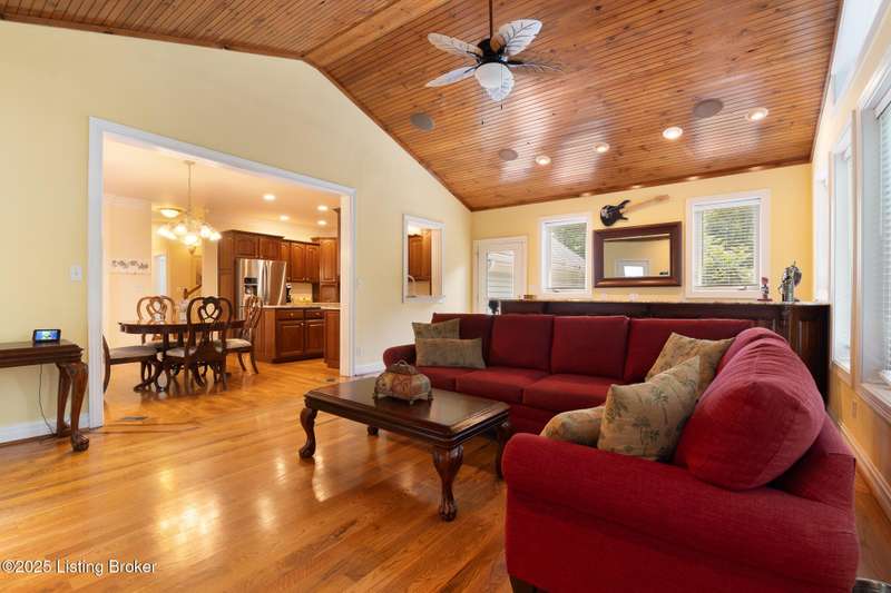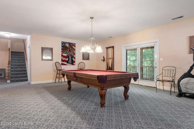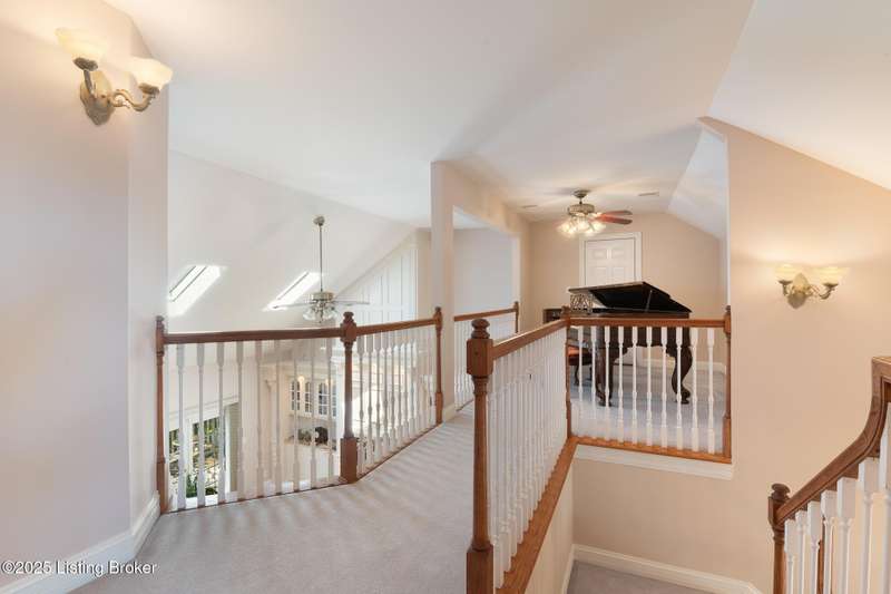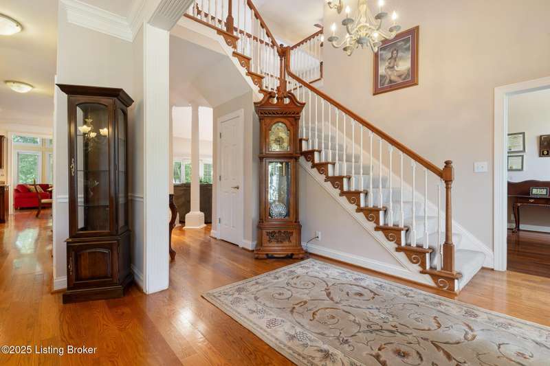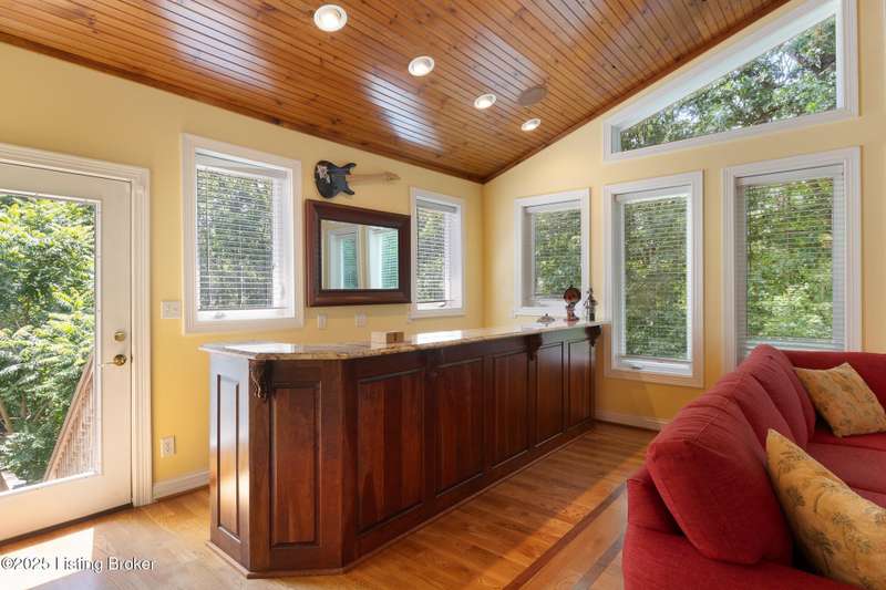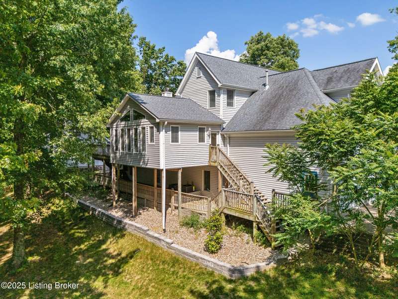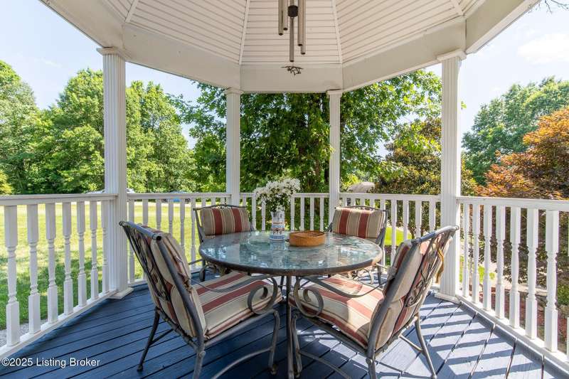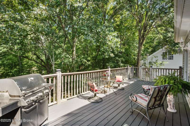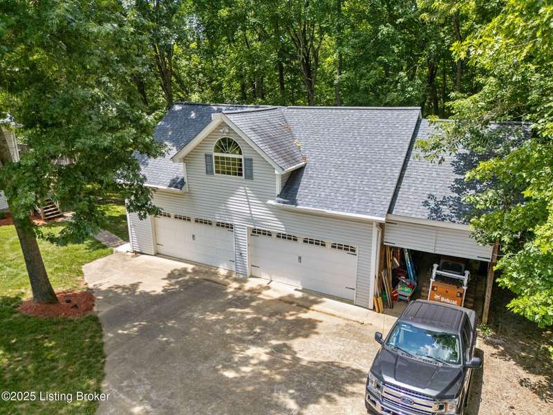 What a Spread! 4.5 Acres of Privacy and Possibility in Fisherville Woods. Room to breathe, room to live—this exciting custom-built home sits on 4.5 acres backing to trees in the sought-after 43-lot neighborhood, where streets curve with the hills and tree lines. You're just minutes from Pope Lick and Beckley Parks, but you'll feel a world away. Car lovers and hobbyists—take note. In addition to the attached 3-car garage with high ceilings, there's a 4-car detached garage/barn, with a covered extension, workshop, 200-amp service, seasonal half bath, natural light and 10-foot ceilings, ready for a car lift, or even your own private ''Top Golf.'' Buck stove and compressor remain. Welcome friends from the home's covered front porch and gazebo overlooking the waterfall pond. Guests flow easily from the foyer through the great room to the kitchen area and Florida room/den and out to the deck. Host holidays and family get togethers in the dining room with the wall of windows looking out to the front porch. The main level includes the spacious primary suite, home office, and flexible guest bath with shower that doubles as a second primary bath. With front and back stairs, the ingenious floor plan offers both open and private spaces. Enjoy multiple levels of living space with 9-foot ceilings on the first floor and lower level. Up the grand staircase, the loft above the two-story great room is ideal for study, music or reading and is close by the upstairs bedrooms and bath. A few steps down the back stairs, you'll find the bonus room, perfect as a second office, playroom, or bedroom. The back stairs lead to the garage access and the first-floor laundry room by the kitchen. The lower level, with large windows, houses a bedroom perfect for guests or teens, full bath, and wide open 35' by 18' rec/entertainment room walking out to the patio that runs the length of the home and accesses the walkway to the outbuilding. The larger of the two organized storage rooms walks up to the garage. This home was crafted with care by the owner/builder with 2x6 exterior walls with blown-in insulation, warranted Alcoa siding, 44 aluminum-clad casement windows and doors, rich moldings, solid oak flooring with walnut inlays on the main level, and solid cherry Vittitow cabinetry throughout, including a 12' bar in the Florida room/den. Dual heating and A/C units were installed in 2023 with 10-year transferable parts warranty add peace of mind. This is more than a home, it's a lifestyle!