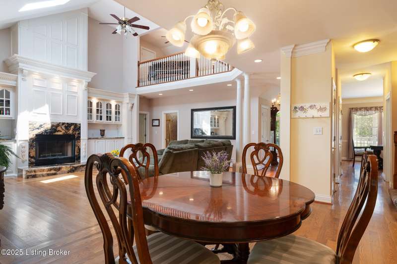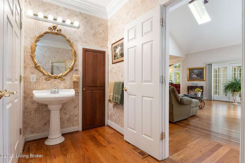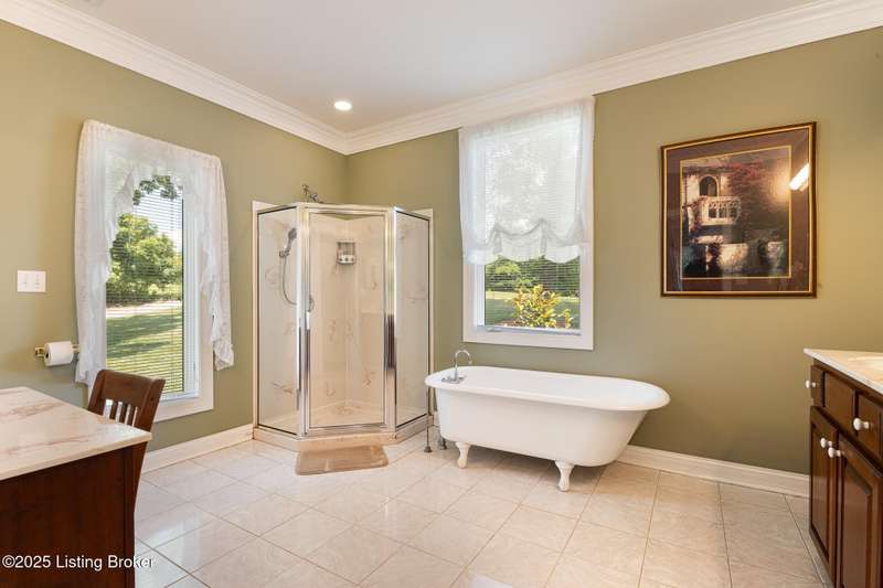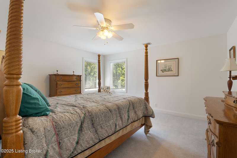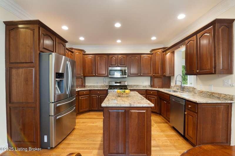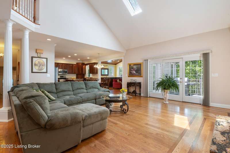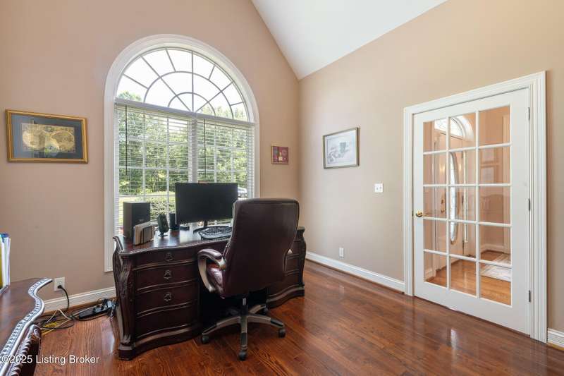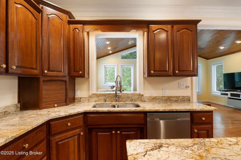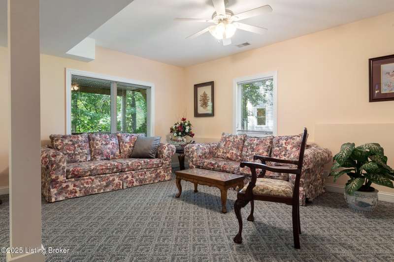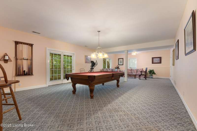 What a Spread! 4.5 Acres of Privacy and Possibility in Fisherville Woods. Room to breathe, room to live—this exciting custom-built home sits on 4.5 acres backing to trees in the sought-after 43-lot neighborhood, where streets curve with the hills and tree lines. You're just minutes from Pope Lick and Beckley Parks, but you'll feel a world away. Car lovers and hobbyists—take note. In addition to the attached 3-car garage with high ceilings, there's a 4-car detached garage/barn, with a covered extension, workshop, 200-amp service, seasonal half bath, natural light and 10-foot ceilings, ready for a car lift, or even your own private ''Top Golf.'' Buck stove and compressor remain. Welcome friends from the home's covered front porch and gazebo overlooking the waterfall pond. Guests flow easily from the foyer through the great room to the kitchen area and Florida room/den and out to the deck. Host holidays and family get togethers in the dining room with the wall of windows looking out to the front porch. The main level includes the spacious primary suite, home office, and flexible guest bath with shower that doubles as a second primary bath. With front and back stairs, the ingenious floor plan offers both open and private spaces. Enjoy multiple levels of living space with 9-foot ceilings on the first floor and lower level. Up the grand staircase, the loft above the two-story great room is ideal for study, music or reading and is close by the upstairs bedrooms and bath. A few steps down the back stairs, you'll find the bonus room, perfect as a second office, playroom, or bedroom. The back stairs lead to the garage access and the first-floor laundry room by the kitchen. The lower level, with large windows, houses a bedroom perfect for guests or teens, full bath, and wide open 35' by 18' rec/entertainment room walking out to the patio that runs the length of the home and accesses the walkway to the outbuilding. The larger of the two organized storage rooms walks up to the garage. This home was crafted with care by the owner/builder with 2x6 exterior walls with blown-in insulation, warranted Alcoa siding, 44 aluminum-clad casement windows and doors, rich moldings, solid oak flooring with walnut inlays on the main level, and solid cherry Vittitow cabinetry throughout, including a 12' bar in the Florida room/den. Dual heating and A/C units were installed in 2023 with 10-year transferable parts warranty add peace of mind. This is more than a home, it's a lifestyle!