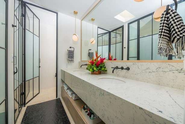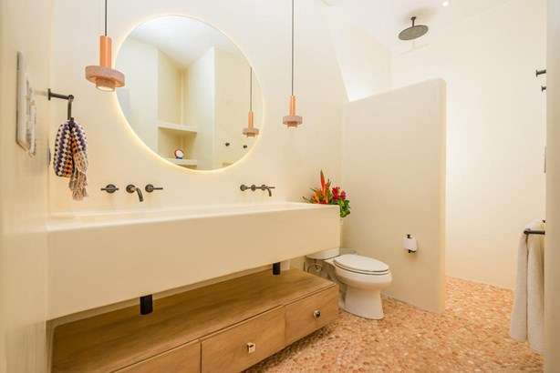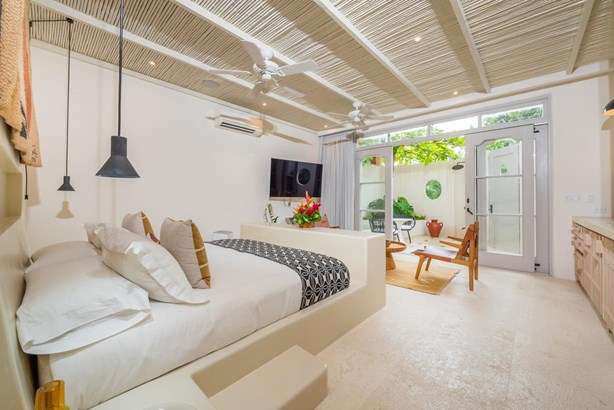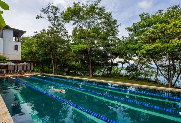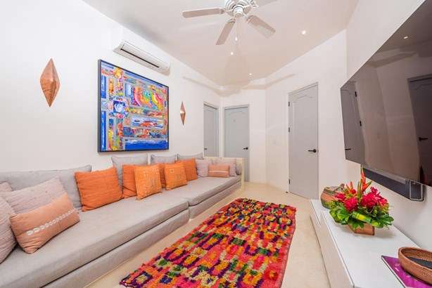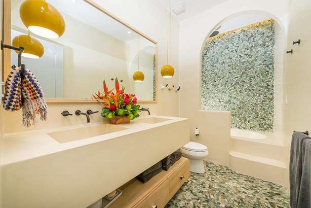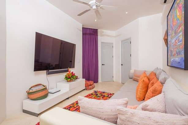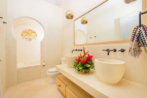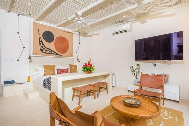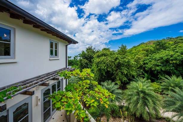 Casa Alegria – 2 Paseo Miraflores: Introducing Casa Alegria at 2 Paseo Miraflores in the enchanting Las Catalinas, a newly custom-built masterpiece that redefines luxury and detail. This exceptional 5-bedroom, 5.5-bathroom home is a true testament to meticulous craftsmanship and offers an unparalleled living experience. This home is located in the heart of Las Catalinas, a beachfront car-free community that offers the perfect blend of nature, luxury, and convenience.Spanning an impressive 5,000 square feet, this residence showcases a harmonious blend of Grecian and Italian influences, creating a timeless and elegant design. The innovative built-in furniture throughout the house not only reduces clutter but also adds an abundance of space and sophistication to each room.As you enter, you are greeted by a welcoming private courtyard adorned with beautiful potted tropical plants, setting the stage for what awaits inside. The stunning custom baby blue arched front door with black accents provides a captivating focal point, and a peek-a-boo door ensures privacy and security.One of the distinguishing features of Casa Alegria is that it is one of the very few homes in Las Catalinas that offers both jungle and ocean views, allowing you to bask in the splendor of nature from every window. Each room has been thoughtfully and uniquely decorated, with an abundance of window and glass patio doors that flood the spaces with natural light and provide breathtaking views.The expansive kitchen and dining room, with patio doors opening to a terrace, is a culinary enthusiast's dream. An oversized stone island with concrete details, handmade tiles on the hood above the gas range, and an abundance of counter space make this a perfect space for creating culinary masterpieces. The living room is a sanctuary of comfort, boasting super-soft carpets and an arched sitting area with views. A gorgeous bar, just off the living room, adorned with tiles from Belgium and Paris, adds a touch of European charm to your evenings.A special mention goes to the lavender staircase, hand-painted with micro-cement, featuring a unique shape and design that is sure to impress. Upstairs, you'll find two dueling master bedrooms, each with its own ensuite bathroom and private coffee area in the middle. The top floor showcases extra high ceilings, and each master bedroom boasts its own unique features, including built-in furniture, stone rain showers, and even an outdoor stone tub with stunning views of the sky and ocean.Downstairs, you'll discover two guest bedrooms with custom built-in furniture and ensuites, one with a tub, and a studio apartment, all uniquely designed and thoughtfully appointed. The media room, nestled in the middle, is perfect for entertaining with its extra-long couch that can convert into two twin beds. The studio apartment comes with a private enclosed terrace with a fountain, and a kitchenette, making it a potential rental separate from the main house.The home also offers an elevator shaft, which is currently used as an office and storage space, providing ample room to store your belongings. It is ready should its next owner want an elevator in the home. Interesting balconies made from personally designed concrete blocks add a touch of intrigue to the exterior, creating a captivating visual experience day and night.Casa Alegria is not only a marvel of design but also offers the utmost in convenience. It's just steps away from the beach, an array of restaurants and shops, a high-end grocery store with a wine cellar, a spa, fitness centers, a wellness center, and a top-notch Beach Club with multiple pools and a gym, ensuring a seamless blend of tranquility and accessibility. Located within the Beachfront car-free community of Las Catalinas, the house is conveniently close to the parking lot for guests. Additionally, miles of hiking and biking trails through the jungle provide ample opportunities to spot wildlife.Whether you're seeking a permanent residence or an investment property, Casa Alegria is the perfect luxury beach home. There are plenty of activities to keep you busy, school buses pick up children for school, and it's renowned as an award-winning travel location. Join us in paradise with Casa Alegria, the "House of Joy" that promises to bring you immense happiness and a lifetime of cherished memories.