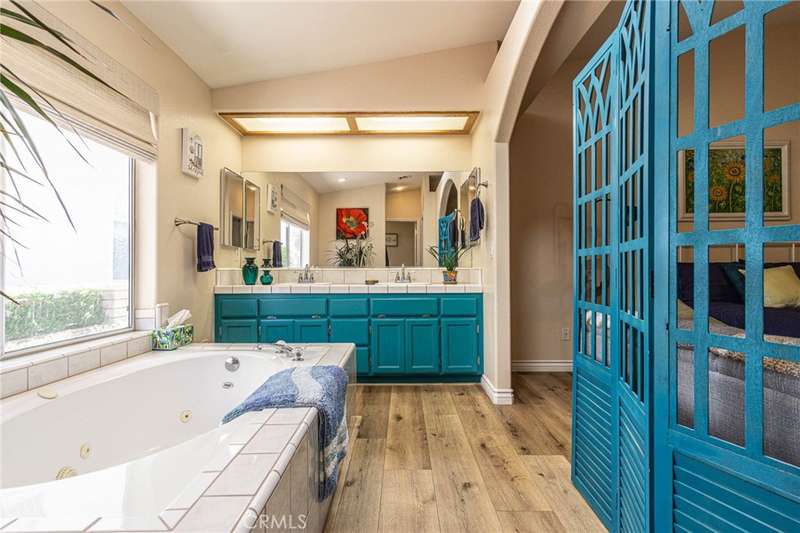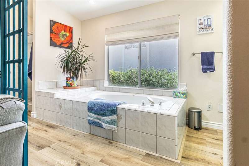 Retreat to the primary suite featuring a luxurious garden tub, dual sinks, and ample closet space. Enjoy the convenience of an indoor laundry room, a central vacuum system, and a water softener. The garage includes a built-in workbench and plenty of storage.