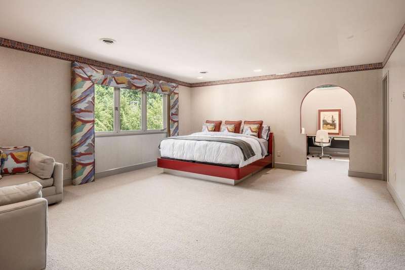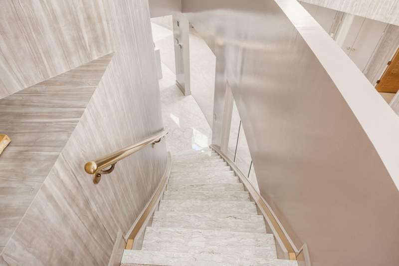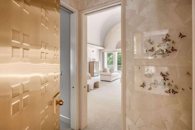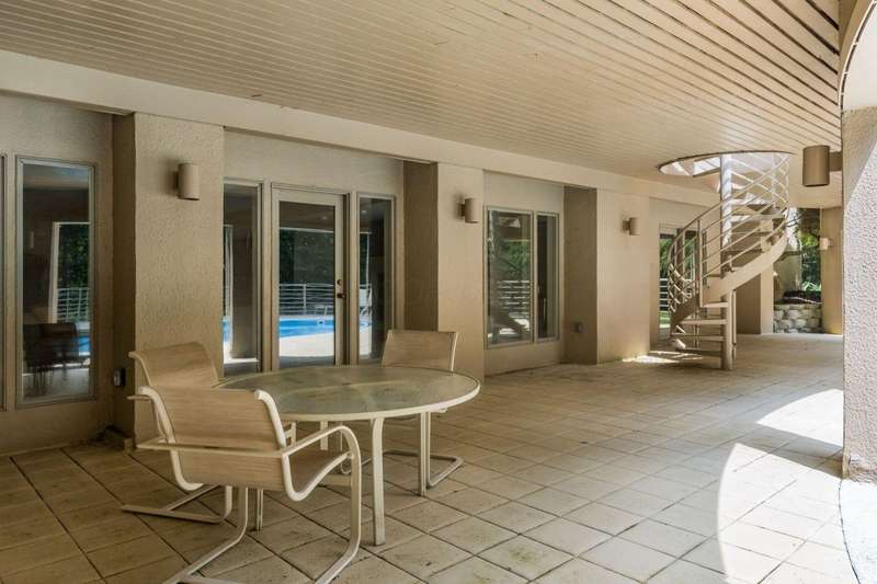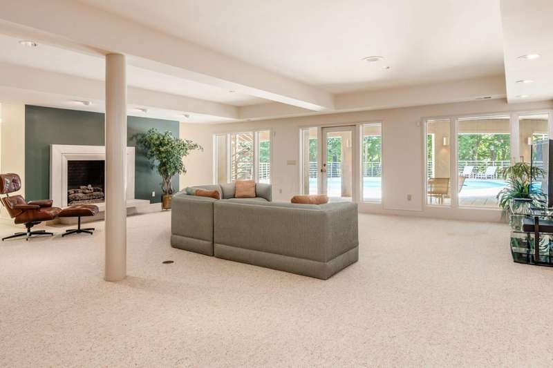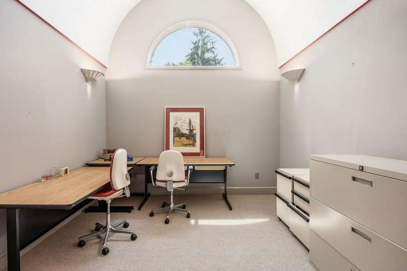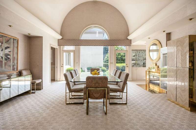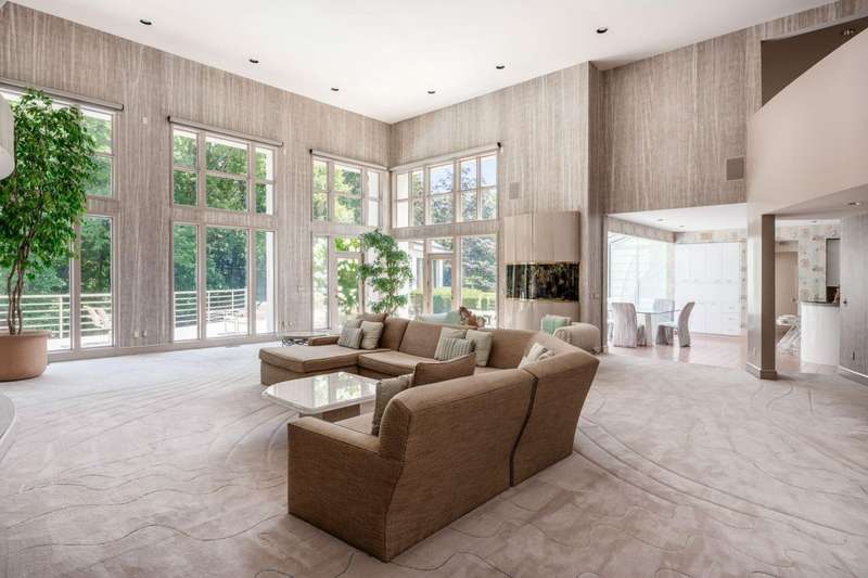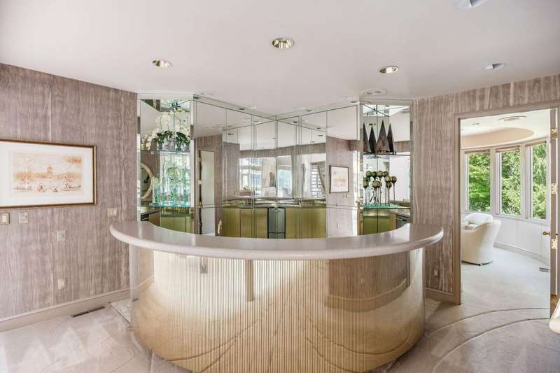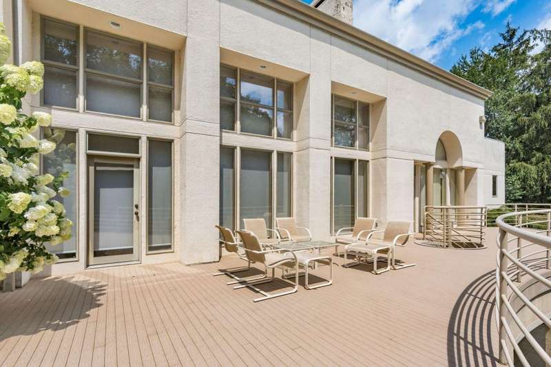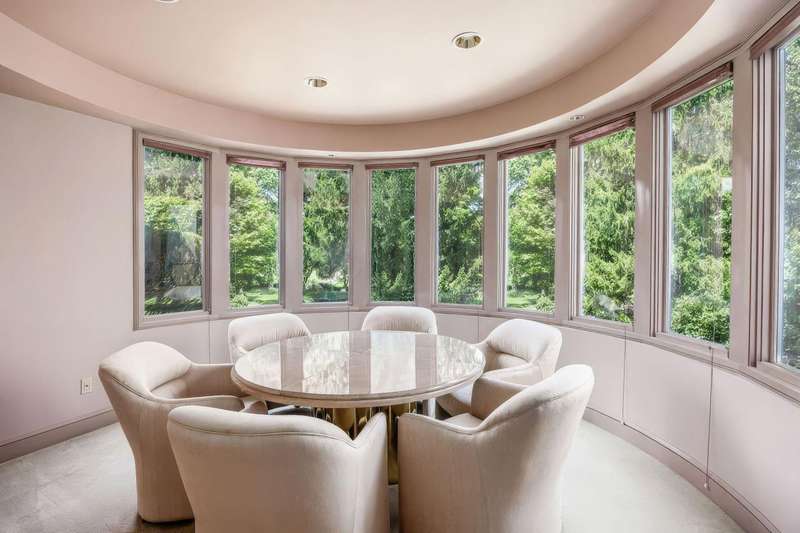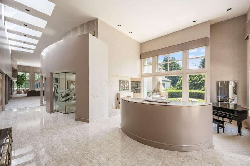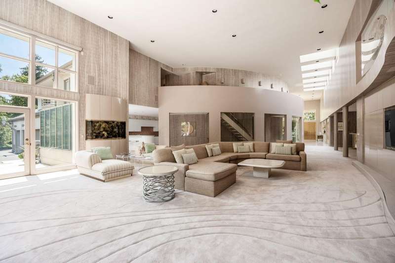 Proudly offered by the original owner, this architecturally striking home in the heart of the Estates at Muirfield Village overlooks the 5th hole of the Muirfield Village Golf Course. Offering expansive living spaces with dramatic 20-foot ceilings, floor-to-ceiling windows, sunken living room with views of a custom water feature perfectly placed outside a wall of windows and a curved marble staircase. Designed for both grand-scale entertaining and comfortable everyday living, the home features five fireplaces, a fully equipped bar, a card room, and a stunning etched-glass enclosed dining room. The great room is complete with a custom built-in saltwater aquarium. The luxurious first-floor primary suite includes a private sitting room with fireplace, a large bath, and a quiet secluded office. A private apartment on the main level includes a full kitchen, living area, bedroom, bathroom and a dedicated exterior entrance for added privacy and independence. Upstairs, four spacious bedrooms feature ensuite baths and access to a central lounge with a wet bar, creating the perfect space for guests or family to relax and unwind. The walk-out lower level is an entertainer's dream with a full bar, cabana rooms for pool guests, a billiards area, an indoor basketball or pickleball court and for Golf lovers a 6 hole putting/driving area. The lower level leads to the outdoor pool deck, screened-in gazebo and a four-car garage accessed via a motor court and the meticulously landscaped grounds.Truly a rare opportunity to own a modern estate in one of Ohio's most sought-after golf communities.