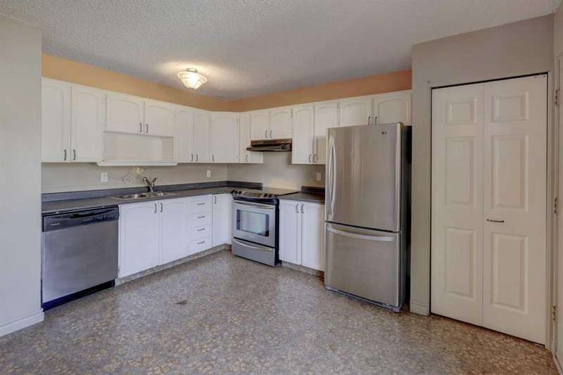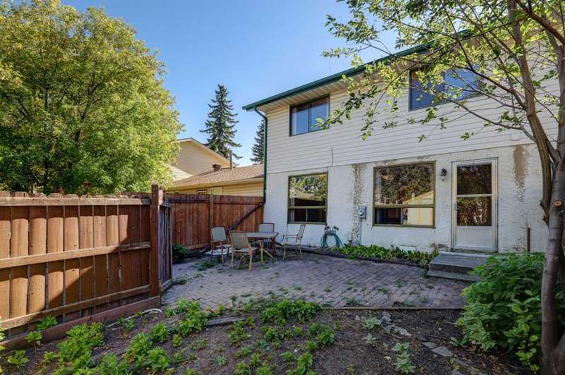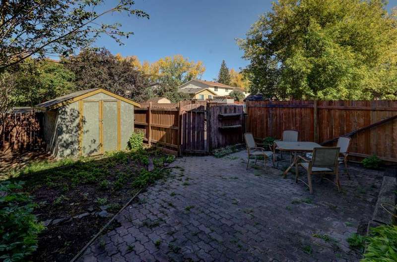 Attention First-Time Home Buyers! Stop renting and take advantage of this fantastic opportunity to own a NO CONDO FEE townhome! This 3-bedroom property is the perfect starting point for your homeownership journey—with plenty of potential to build sweat equity and make it your own. Inside, you'll find a spacious main floor featuring a large kitchen and dining area with convenient access to the backyard. A pass-through opening to the living room allows for easy conversation while preparing meals. A 2-piece bathroom is also located near the front entrance for added convenience. Upstairs, the home offers three generously sized bedrooms and a full bathroom—perfect for a growing family. The backyard is ideal for outdoor living, with a cozy patio area, a handy storage shed, and a rear parking pad accessible from the paved back lane. Situated in a quiet cul-de-sac, this home enjoys excellent access to transit, parks, schools, and a variety of community amenities. Notable recent updates include new shingles in 2021 and a hot water tank installed in March 2025. With a bit of TLC, this home can truly shine. Don’t miss out—contact your favorite agent today to schedule a private tour!