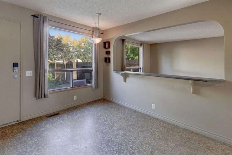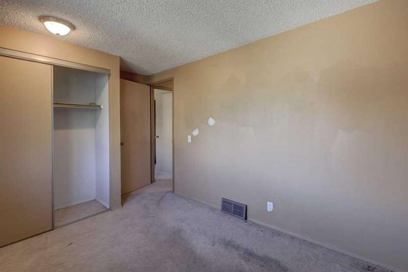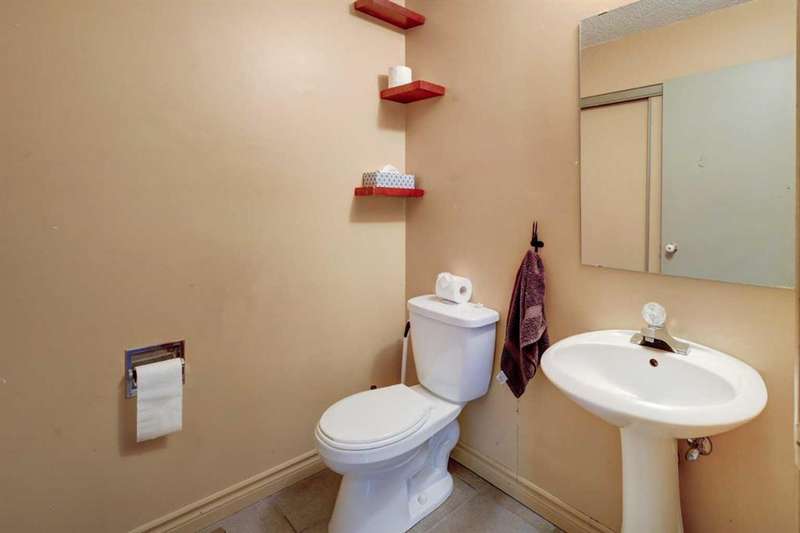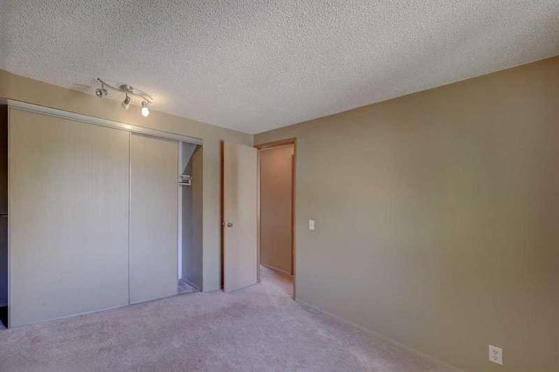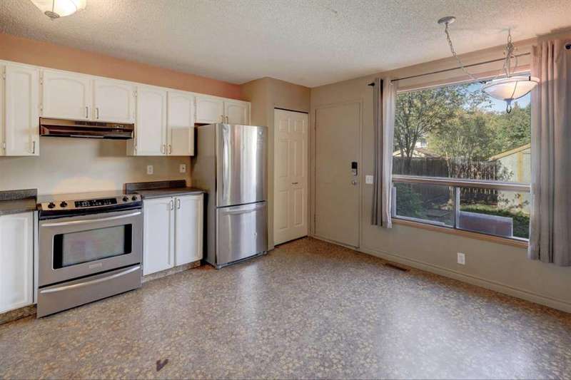 Attention First-Time Home Buyers! Stop renting and take advantage of this fantastic opportunity to own a NO CONDO FEE townhome! This 3-bedroom property is the perfect starting point for your homeownership journey—with plenty of potential to build sweat equity and make it your own. Inside, you'll find a spacious main floor featuring a large kitchen and dining area with convenient access to the backyard. A pass-through opening to the living room allows for easy conversation while preparing meals. A 2-piece bathroom is also located near the front entrance for added convenience. Upstairs, the home offers three generously sized bedrooms and a full bathroom—perfect for a growing family. The backyard is ideal for outdoor living, with a cozy patio area, a handy storage shed, and a rear parking pad accessible from the paved back lane. Situated in a quiet cul-de-sac, this home enjoys excellent access to transit, parks, schools, and a variety of community amenities. Notable recent updates include new shingles in 2021 and a hot water tank installed in March 2025. With a bit of TLC, this home can truly shine. Don’t miss out—contact your favorite agent today to schedule a private tour!