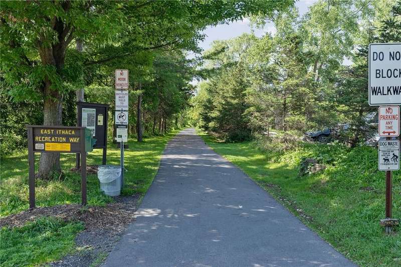 Easy living near Cornell, shopping, and scenic walking trails! This 2-bedroom, 1.5-bath Eastwood Commons condo stands out with a main floor half bath, cozy fireplace, and central air to keep you cool all summer. Many nice updates throughout, including newer windows, furnace, AC, water heater, appliances, updated bathroom, and new kitchen and entry flooring. The spacious living room features corner windows that are perfect for your favorite plants. Enjoy the convenience of main floor laundry and an attached garage. Upstairs, you'll find two generously sized bedrooms and an updated full bathroom. Step outside to a fenced private patio?ideal for morning coffee or dining al fresco. Located next to the East Hill Rec Way, it's perfect for biking or walking to Cornell, and just moments from the peaceful trails of Six Mile Creek Nature Area. Let the HOA handle exterior maintenance, lawn care, snow removal, trash, and water/sewer, so you can relax and enjoy low-maintenance living.