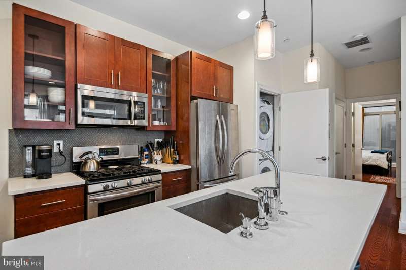 Charming four bedroom home full of character! Enter in the open, full-floor living room and kitchen with half bathroom and backyard access. The washer is on the first floor, hang to dry in your spacious back yard or pop into the dryer in the unfinished basement. Theres also plenty of dry storage space downstairs too. Upstairs, find two bedrooms and a spacious, full bathroom. Two separate stair cases lead to the two, large third-floor bedrooms. The Olde Kensington location is super walkable; in 2 mins youll find a seat at Wissahickon Brewing Company (which is also a coffee shop during the day!), roll out your yoga mat at Monarch Yoga, and stroll over to Frankford Ave in less than 10 to La Colombe. Walk to other nearby Fishtown, Northern Liberties and hot spots on Girard Ave as well as public transportation.