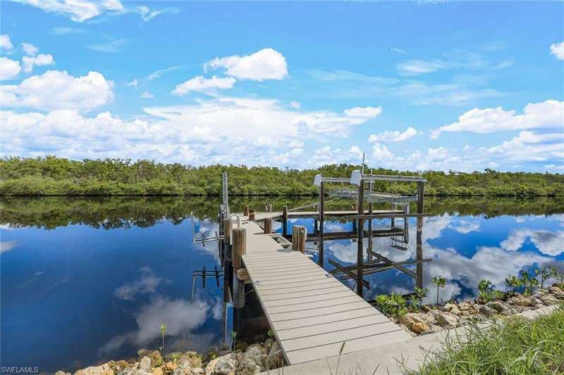 Imperial River Paradise. Fantastic large direct Gulf access riverfront lot offers a newer L-Shaped dock with 10,000# boat lift and a personal watercraft lift it also has water & electric fixtures in place. This a beautiful private .35 acre premium lot that offers fabulous unobstructed views of wide water and the Bonita Bay preserve. The concrete seawall has been reinforced with additional rip rap and the lot has Bonita Springs Utilities water & sewer connections already on site which will help reduce impact fees when building. Approximately 1 mile to the white sand beaches of the Gulf of Mexico. Ideal location offers boaters options of quick access to Estero Bay out New Pass to the Gulf of Mexico or a short trip south through Little Hickory Bay to Wiggins Pass.