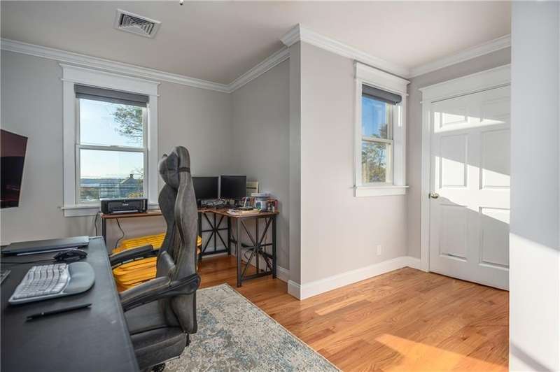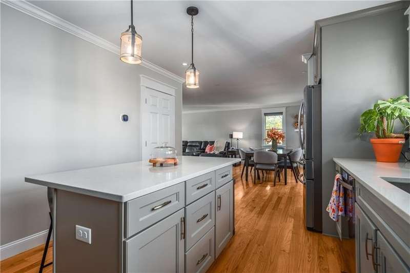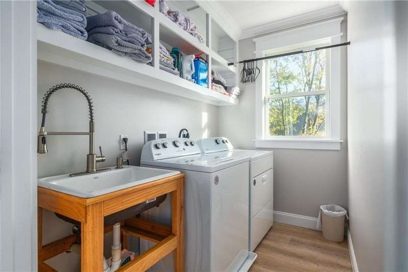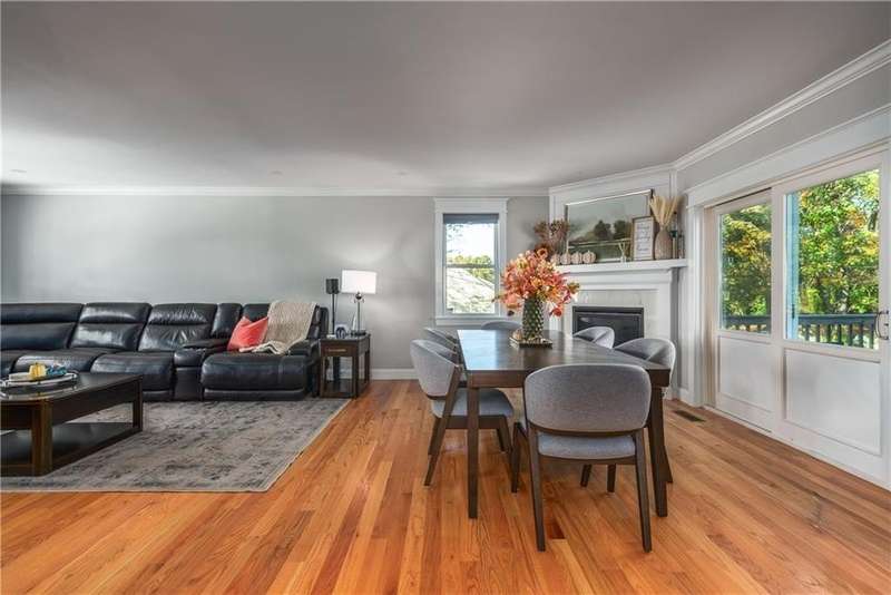 Gorgeous 2022 build in Portsmouth, one of the East Bay's premier towns. The sweet front porch offers the charming entry of a vintage home, while the open-concept first floor is ideal for today's living. Sunny and inviting, you'll love the gas fireplace, large living room, and dining area, and all the counter space and kitchen island with seating. There's also a walk-in pantry and a full bath on the first floor. The integral 2-car garage is perfect for bringing in groceries on a rainy day. Upstairs are three more large bedrooms, a full bath, a separate laundry room, and a primary suite, making four bedrooms, with a walk-in closet and a huge en-suite bath with a walk-in shower and a double vanity. The full basement has tall ceilings and lots of windows along the back, a perfect spot for your media room, art studio, or home gym build-out. The lot is enormous, nearly 26,000 sq feet, and faces West, so you'll never miss a sunset! This home is completely turnkey and well-maintained. Only 20 minutes from Newport, the Naval College, and world-famous beaches - this is a great location for people looking to move to Rhode Island and settle in the East Bay. Only 10 minutes away is SouthCoast Marketplace, with grocery stores, retail, and restaurants.