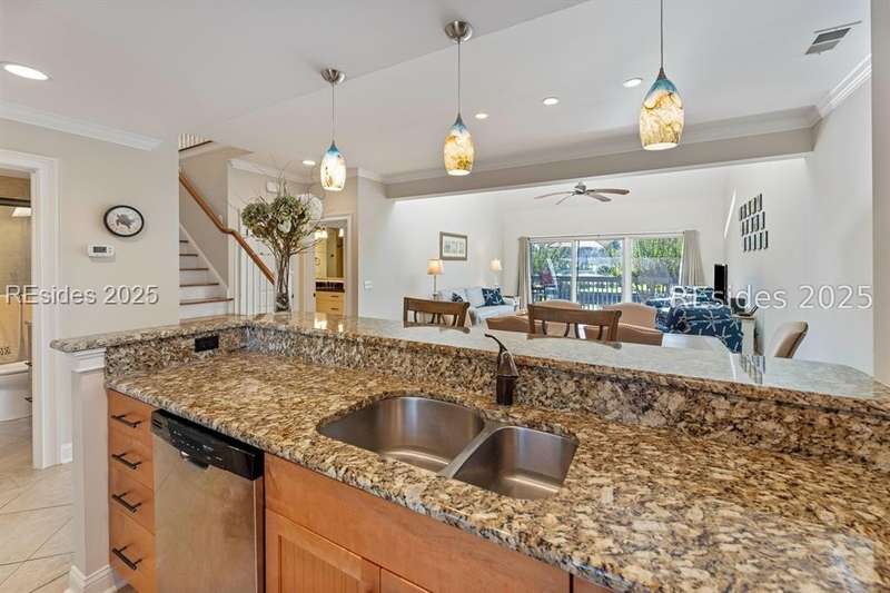 One of the BEST lagoon/golf views in Inverness! A RARE 4BR/3BA Inverness unit in Palmetto Dunes directly on the 11-mile lagoon. 2 Bedrooms are on the main floor including the primary and 2 other bedrooms are located upstairs with full egress. This nicely renovated/converted unit with its cathedral ceilings, skylights and many windows bring the outside in creating an open and airy living space. This unit is conveniently located to the beautiful saltwater pool and tennis courts with only steps to the day dock for lagoon access and fishing as well as bike ride or walk to the beach. With granite countertops, pre-engineered flooring, updated bathrooms all you need to do is furnish a few bedrooms and start using your new home immediately. Recent upgrades include new slider windows in both the living room and Primary bedroom, a new washer, and pavers in the front. Perfect rental, second home or full-time residence. This unit has never been rented. Shows great and a must see!
