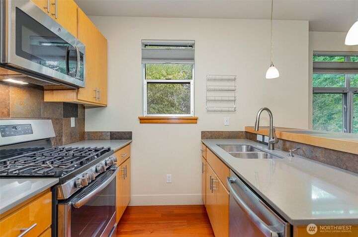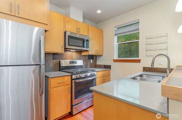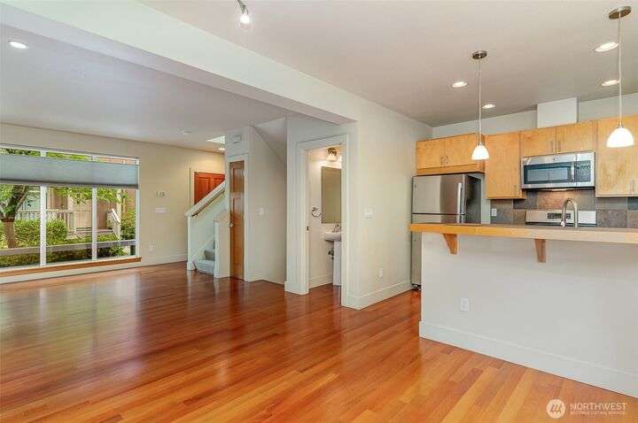 Bright and spacious, this well-maintained home is just 2 blocks from Mt. Baker Light Rail. Main level features open living/dining with gas fireplace, hardwood floors, stainless kitchen, powder room, and deck overlooking the courtyard. Upstairs: vaulted primary with walk-in closet, second bedroom, and full bath. Ground floor offers laundry, storage, and attached garage. Prime location with easy access to I-90, I-5, downtown, parks, and more. Terms: 12+ mo lease. 1st, last, + 1 mo deposit. Tenant pays utilities + $125/mo WSG. No smoking, no co-signers. Small dog case by case w/deposit. Renters insurance required. 3:1 income ratio, 740+ credit.