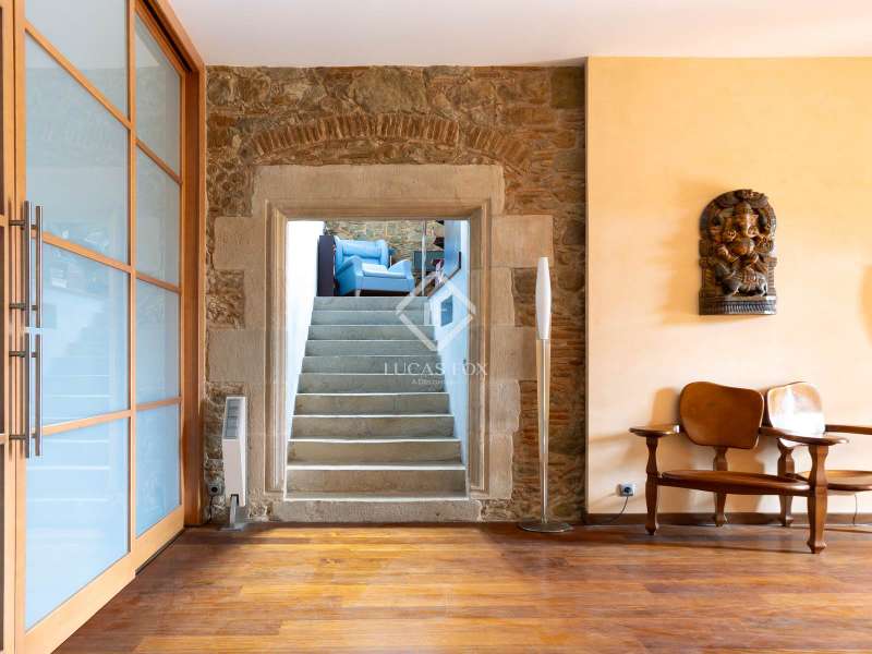 Lucas Fox presents this country house from 1708 for sale in the very centre of Teià. It benefits from having all amenities nearby, with a perfect position to make the most of the natural light and a good low-maintenance plot. In addition, it has very good views of the town and the sea. It sits on a completely flat 676 m² plot and has a built surface area of more than 1,100 m², distributed over three floors plus a garage with capacity for six cars. The current owners acquired this country house when it was still in ruins and meticulously restored it down to the last detail. This construction and restoration project will offer total tranquility and comfort to future owners. Currently, the country house is distributed so that two or even three families can live in it, since it is divided as follows. On the ground floor, we find the communal areas where we have the entrance hall, a games room, a large living-dining room with a fireplace, kitchen, bookshelves, utility room, wine cellar, guest bathroom and a second living-dining room with a barbecue. The main rooms have direct access to the garden and receive plenty of natural light. The second floor was divided into two areas for two families, one in each wing, with total independence. Finally, on the top floor, we find the huge main bedroom, with a large dressing room, bathroom with a spa area and even a reading or office space. The composition of La Finca allows you to easily play with its layout, so with a small investment the country house could be unified again into a single unit for those wishing to do so. It should also be noted that it has a lift to connect the different floors and there is a project to build a beautiful pool. Please contact us to receive detailed information about the property.