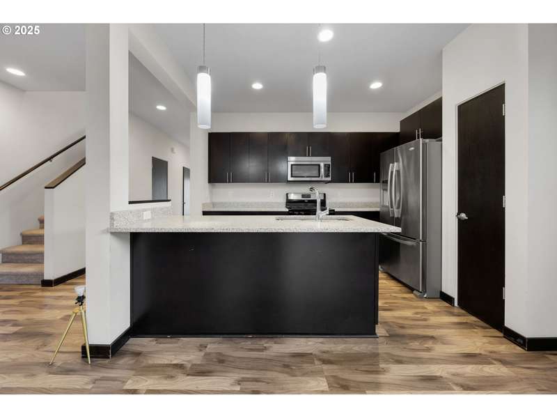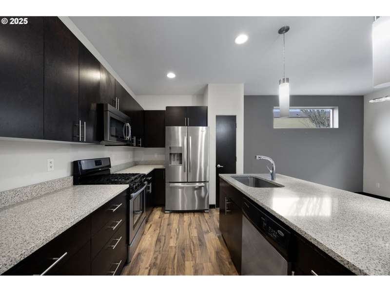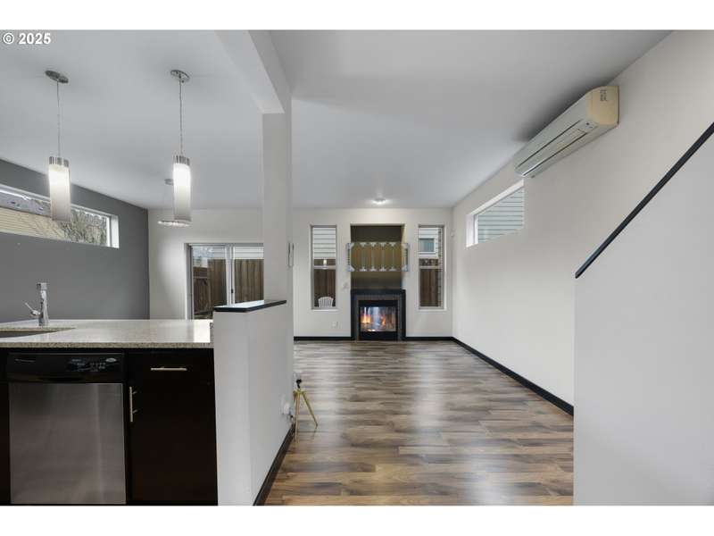 This completely detached, turn-key ready, contemporary 2 story condo is located in one of Milwaukie's most desirable areas! With 1,583 sq ft and no shared walls, this 3 bedroom, 2.1 bathroom offers a perfect blend of style and functionality. The open concept floor plan creates an airy and inviting atmosphere with high ceilings and gas fireplace. The kitchen features quartz countertops, a functional layout, and a pantry! Upstairs the large primary suite boasts vaulted ceilings, walk in closet, and double sinks in the bathroom. The loft opens to a charming balcony through French doors giving space to relax after a long day or to soak up the morning sun with a cup of your preferred morning beverage. The backyard is low maintenance and fenced. Easy access to public transportation. Max station is less that 1 mile away and about a 15 min drive to downtown Portland.