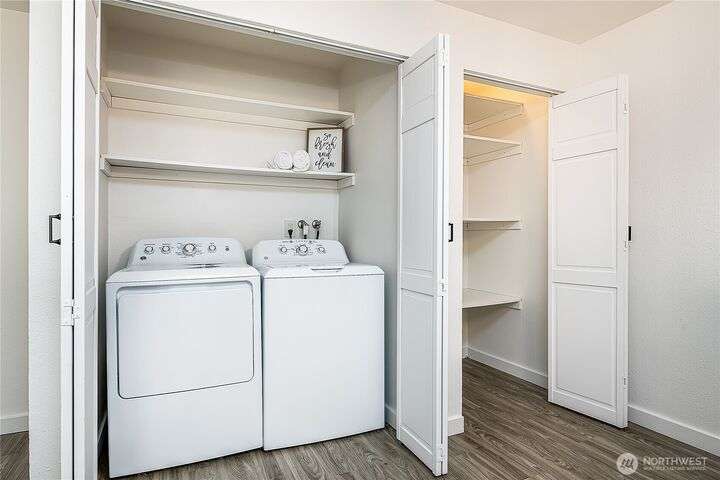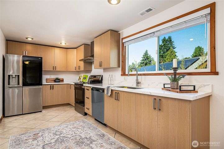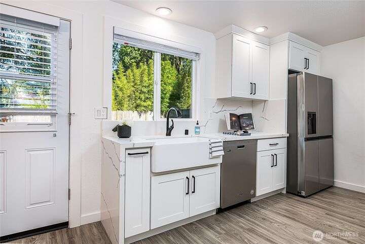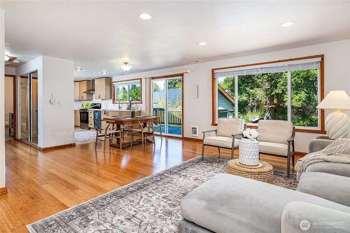 Located at the end of a quiet street this remodeled Shoreline duplex blends thoughtful design with unmatched flexibility. Each unit enjoys its own private yard and garage, ideal for multigenerational living, rental income, or house hacking. Inside, both homes have been completely refreshed with new kitchens, updated finishes, and modern, light-filled spaces. The larger unit includes generous living and dining areas that open to a sunny back deck, perfect for entertaining. The second unit features a clean, efficient layout ideal for tenants, guests, or extended household needs. Just minutes from the new light rail, parks, groceries and schools. This is a rare opportunity to own a turn-key property in a growing and well-connected neighborhood