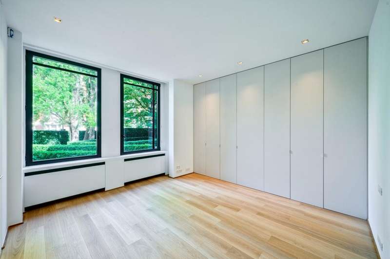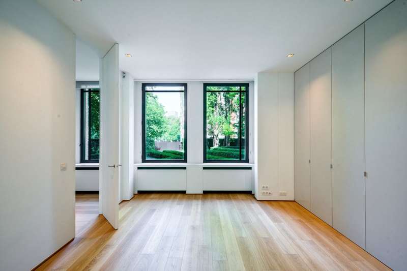 Opposite the privileged site of La Cambre Abbey, in a high-class, modernist Art Deco building, a beautiful, stylish duplex flat on the ground floor and English courtyard level. Its surface area of +/- 180 m² offers a bright reception room with clean lines opening onto a patio garden, a fully equipped kitchen, 2 bedrooms and 2 bathrooms. Garage. PEB G.