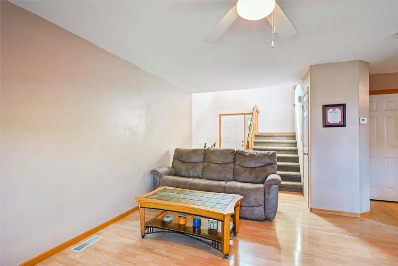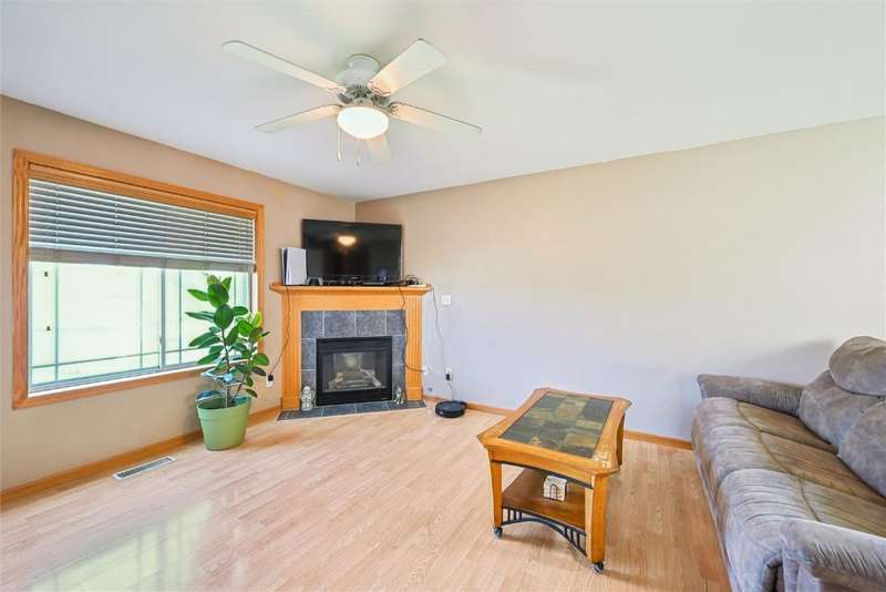 Welcome to this spacious and beautifully maintained 3-level townhome in a quiet location just minutes from shopping, dining and I-380. Step inside to find a bright, open layout with a cozy gas fireplace and an eat-in kitchen, a breakfast bar, and access to a deck with peaceful backyard views. Upstairs, the oversized primary suite is a true retreat with vaulted ceilings, brand new carpeting, a large walk-in closet, and an en-suite bath. Two additional generously sized bedrooms, a full bath, and a convenient second-floor laundry room complete the upper level. The lower walkout level offers endless potential by creating a rec room, office, gym, or guest space, whatever fits your lifestyle. Big-ticket updates include brand new sliding glass doors (pending installation), new water heater (2025), new AC (2023) and newer siding and roof (2021), giving peace of mind for years to come. Enjoy the benefits of a well managed HOA where lawn care and snow removal are handled for you. Priced below market due to job relocation, this townhome blends value, space, and location in one rare find. Dont miss your chance to call it home!