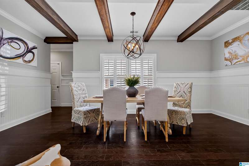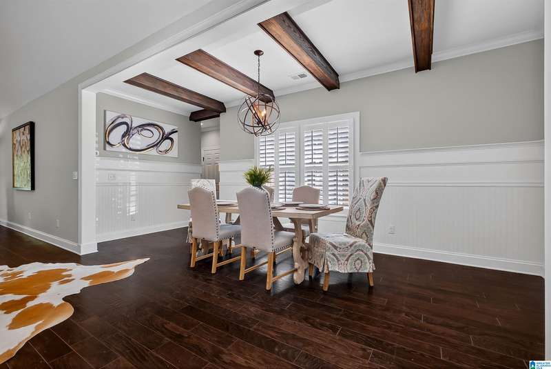 Ross Bridge isn’t just a neighborhood—it’s a lifestyle. Known for its welcoming community, you’ll see kids riding bikes, neighbors walking their dogs along tree-lined sidewalks, & families enjoying the pool, parks, green spaces, shops, & restaurants right at your fingertips. Situated on a desirable corner lot w/ a private backyard, this home offers the perfect blend of beauty & functionality. Step inside to find main level living, spacious master suite plus an additional bedroom/office. Open-concept design ideal for entertaining and everyday family gatherings. Gorgeous hardwood floors, crown molding, wainscoting, & plantation shutters throughout. Upstairs you will find a Large loft perfect for teens, media space or second living space, 3 additional bedrooms, & 2 full baths. Extra features include a rare 3-bay garage, private fenced backyard, spacious patio for outdoor living, and a beautifully designed brick exterior with timeless architectural detail. This one is a gem inside & out