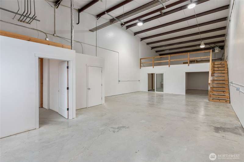 End-unit storefront in the Wricon Condominiums, a boutique 8-unit development near I-5, Bakerview, and the Guide Meridian. This versatile 1,532 sq. ft. commercial condo with a 400 sq. ft. mezzanine is turnkey and ready for your business. Welcoming reception/office, ADA restroom, fresh interior paint, and excellent functionality make it ideal for a wide range of uses. The 14’ roll-up door provides easy access for larger vehicles, while abundant parking and direct access to overflow parking ensure convenience for customers and staff. Unrestricted customer access allows maximum flexibility for business operations. Perfect for a showroom, service-based business, or high-capacity storage in a prime Bellingham location.