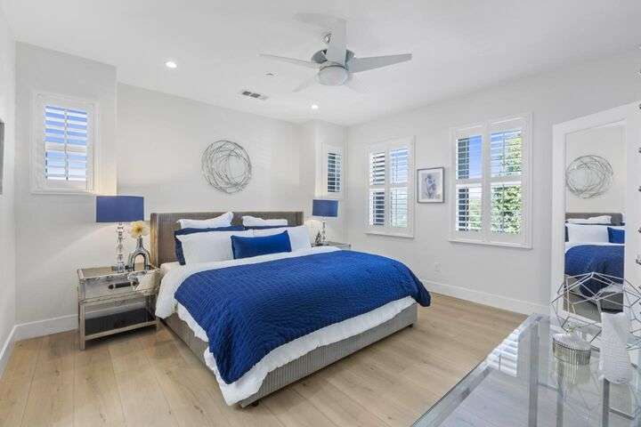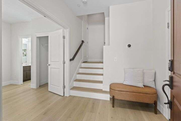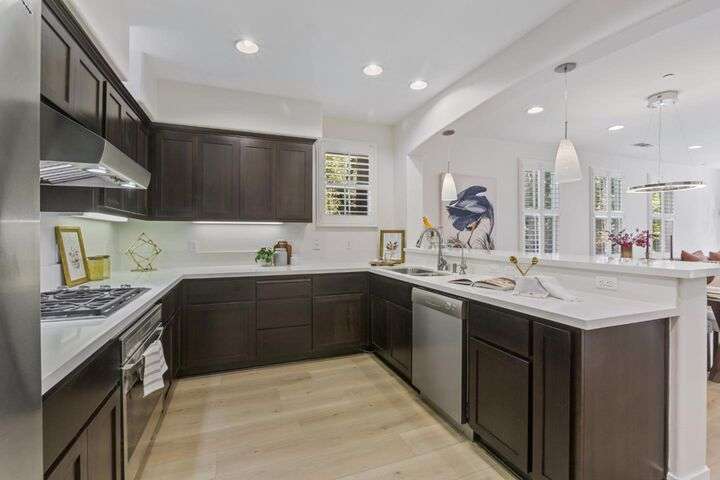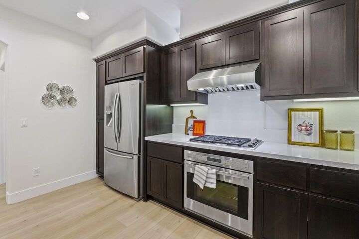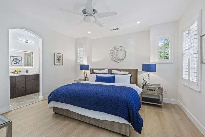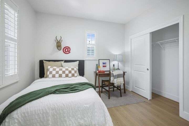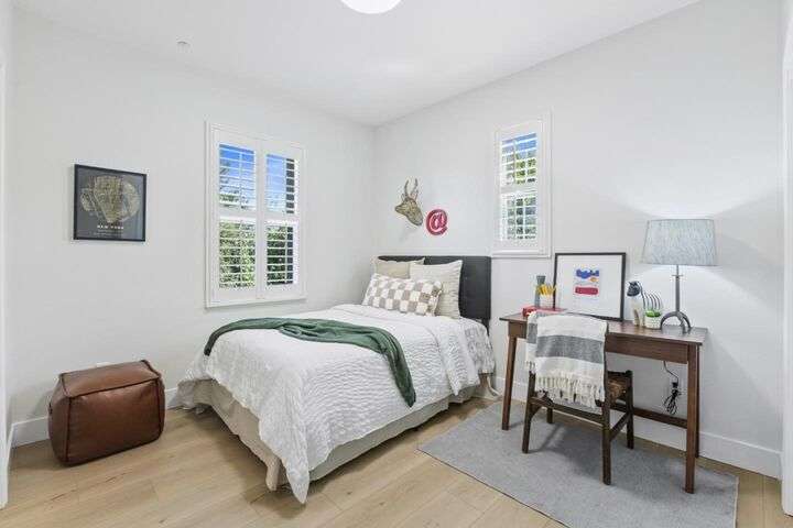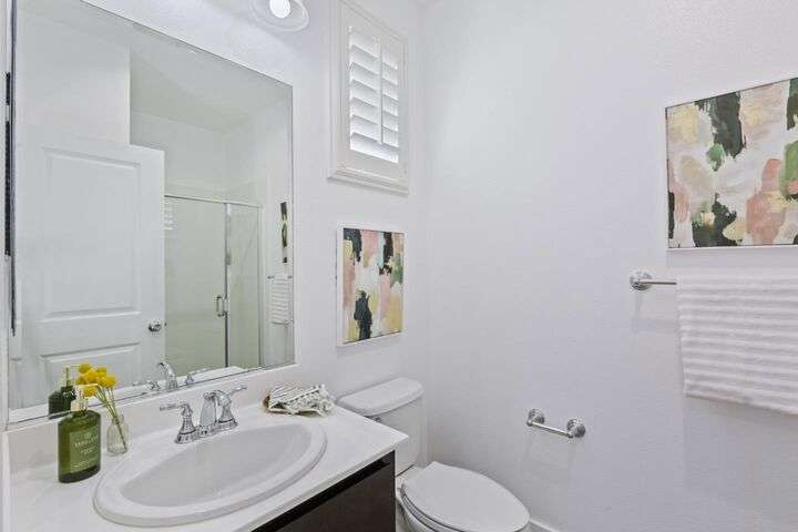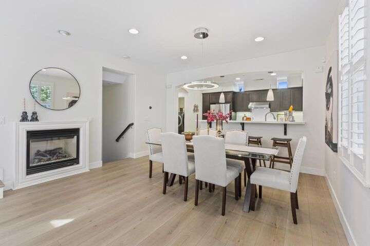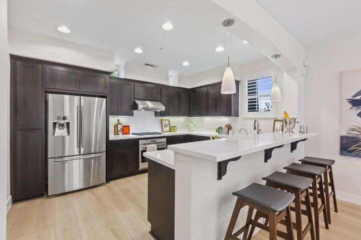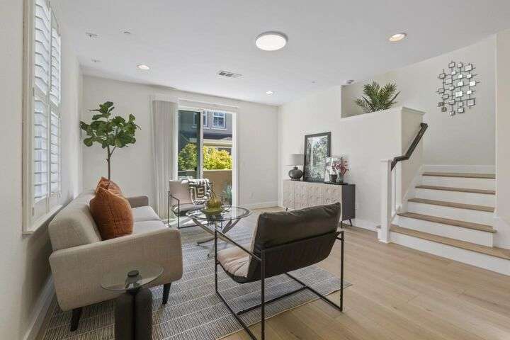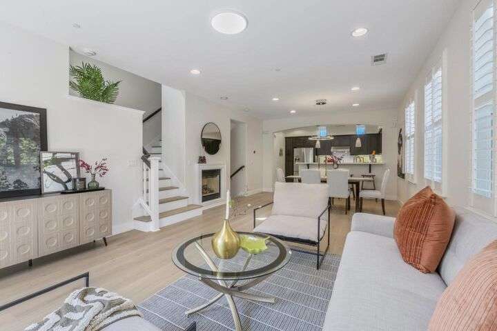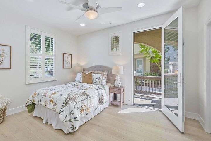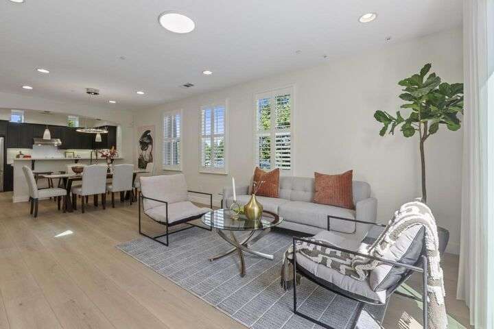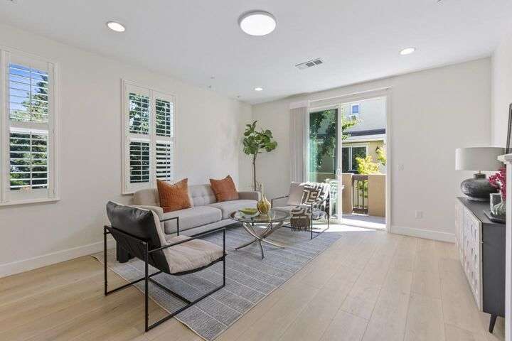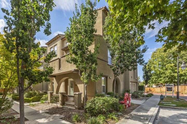 Silicon Valley Tech's DREAM HOME! Luxury and SMART HOME features to this END UNIT residence with VIEWS await! Quietly situated at the very back of Midtowns most desired community, Village Square. Numerous builder upgrades in this residence! THREE Primary Bedrooms! OPEN CONCEPT floorplan design filled with natural light from windows on nearly all sides. Bonus Office Nook overlooks main living areas. Views from the main living areas & sunny deck. Chefs Kitchen features walnut finished shaker cabinets, quartzite counters, high end SS appliances & breakfast bar. New gleaming, wood-like planked floors throughout! Smart & Tech Savvy Home: Nest Thermostat, Smart Controlled Lighting, Ring Doorbell, Smart Garage Door Opener, Cat 5 Wiring, and FAST FIBER INTERNET available. The GRAND PRIMARY RETREAT features double sink vanity, large stall shower & walk-in closet. Fresh interior paint, recessed lighting, spacious laundry room, side-by-side 2 car garage. Luxury Village Square community has serene park, children's play structure, picnic tables. LOW HOA: $460 /month. Meander the charming streets of the Rose Garden neighborhood from access gate at back of community. Nearby shopping, dining, SAP Center, The Alameda, Santana Row, Valley Fair Shopping, & Diridon Transportation Hub.