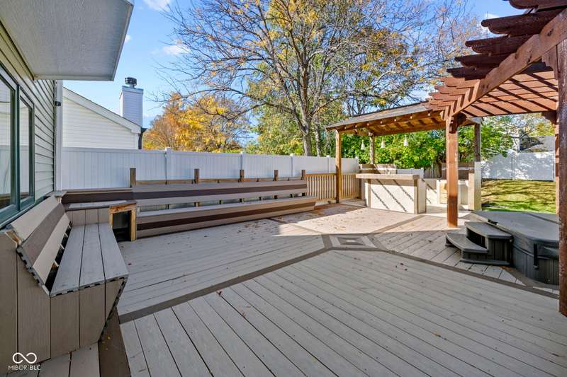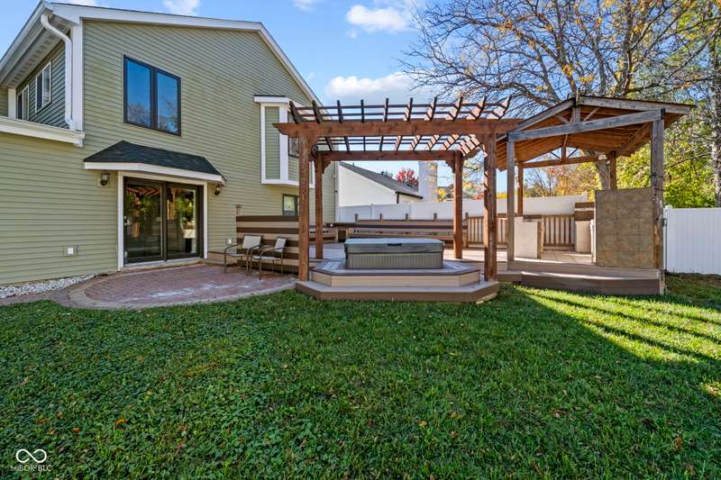 This beautiful 5-bedroom, 4.5-bath home offers over 3000 sqft of living space, including three suites-two with jetted tubs. The first floor features a large kitchen with granite countertops and plenty of cabinetry, flowing into an open-concept living and dining area, perfect for entertaining. The home also includes an office area and an entertainment room with custom built-in cabinets and shelves. Enjoy the large composite deck with an outdoor kitchen, hot tub, and two pergolas, all within a fenced yard. With two HVAC systems and tons of square footage for the price, this home is a must-see!