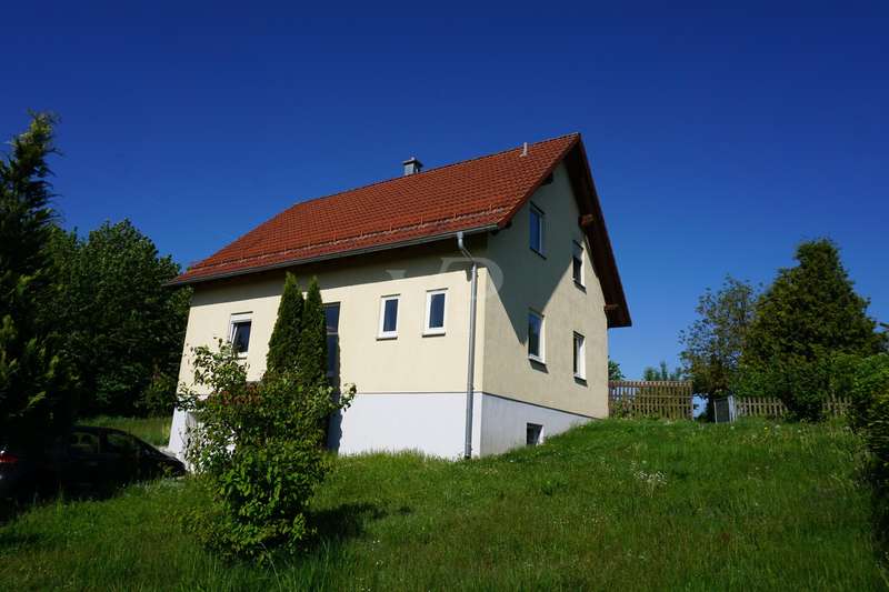 This impressive, detached architect's house is situated in one of the quietest locations in Neunburg v.W. on the edge of an absolutely peaceful residential area. This prestigious property is the right choice for anyone who enjoys peace and quiet, appreciates nature and greenery in the immediate vicinity and yet does not want to miss out on short distances for everyday necessities. This architect-designed house was planned and built in 1981 on a plot of approx. 2574 m² in high-quality solid construction. The location on the edge of the village is exceptionally beautiful and offers an open and unobstructed view of the meadows and fields below. Here you can really speak of idyll. With a living area of over 324 m² spread over two floors, this house offers plenty of space as well as architectural highlights. In addition, the entire basement has been converted for residential use. There is a bar and two bedrooms in the basement. One room was subsequently converted into a bedroom. Due to the hillside location, the first floor has terraces at ground level to the sides. There is a terrace on each side of the house with seating to enjoy the outdoors. The open floor plan in the kitchen, dining and living area invites you to sit together comfortably. A separate area with a lockable door is provided for the parents. There is a large dressing area, a large daylight bathroom with double washbasin, bath and shower and the master bedroom. An office, pantry, storage room and guest WC round off the first floor. A spiral staircase leads past the guest WC to the upper floor. Downstairs there are two shower bathrooms with natural light and four bedrooms. There are large balconies on two sides, from which you can look out over the beautiful garden. The whole house is heated by oil. The oil tank is buried in the garden and is therefore not a source of odors in the basement. Underfloor heating is installed throughout the house and radiators are also fitted. The tiled stove provides additional cozy warmth for long winter evenings. The property is in good condition, but requires extensive modernization (e.g. bathrooms, floors) and thus offers you the opportunity to implement your individual wishes. Design this extraordinary house according to your ideas and make it your feel-good home. The architectural style, location, views and the beautiful garden with its trees, three terraces and a lawn with plenty of space to relax and play will delight your family. For further information and to arrange a viewing appointment, please contact us. We look forward to seeing you!