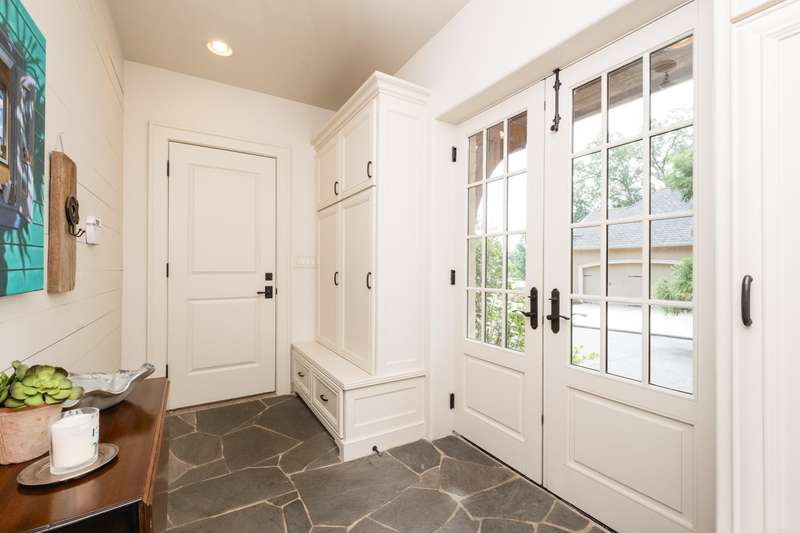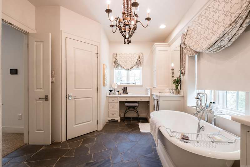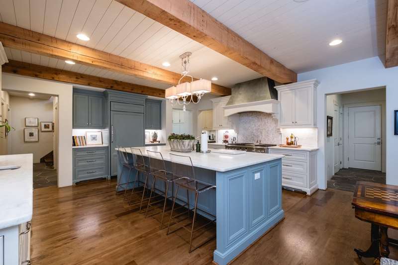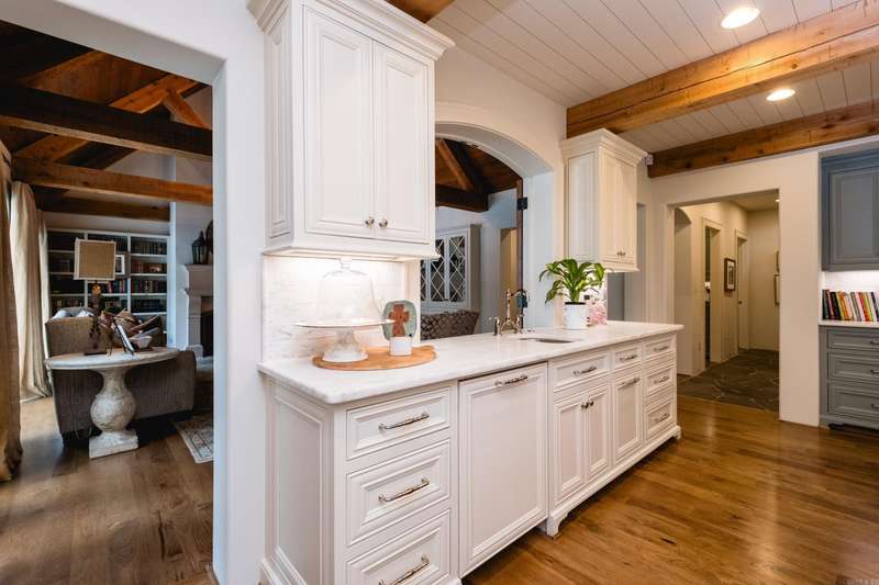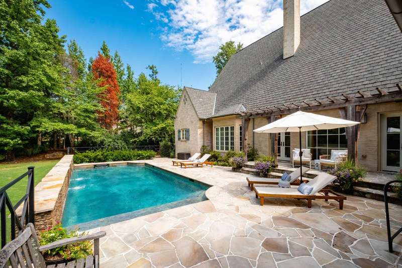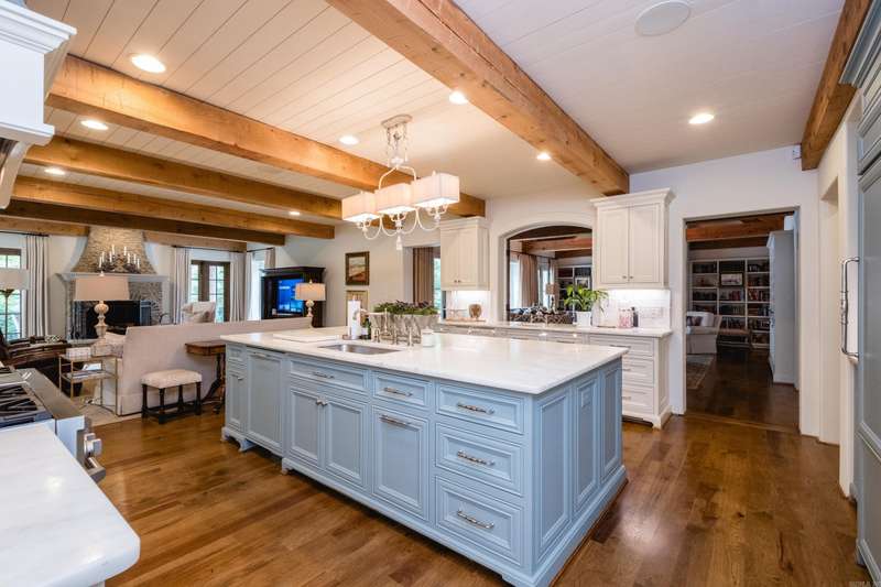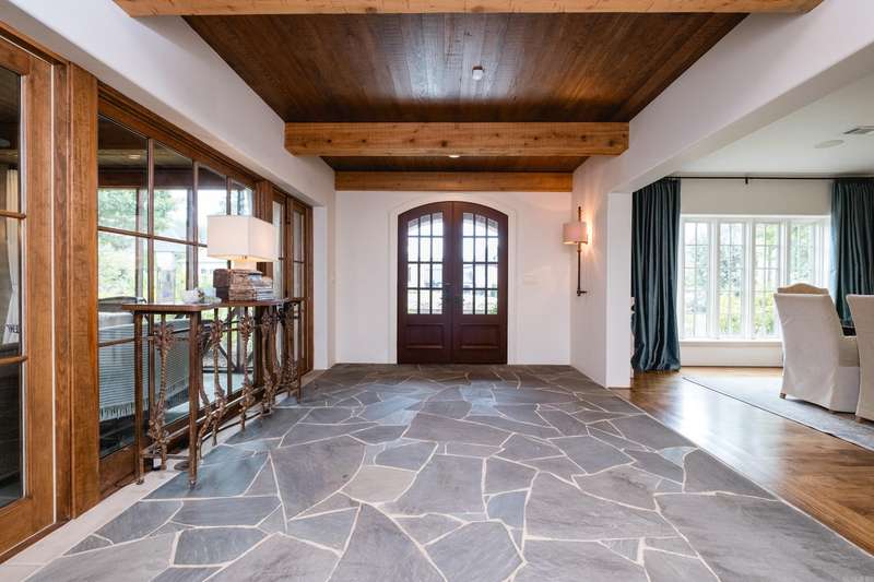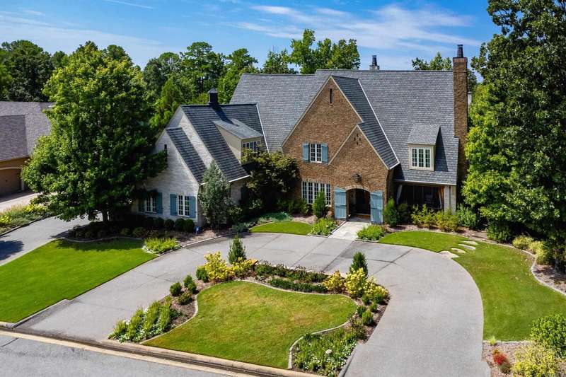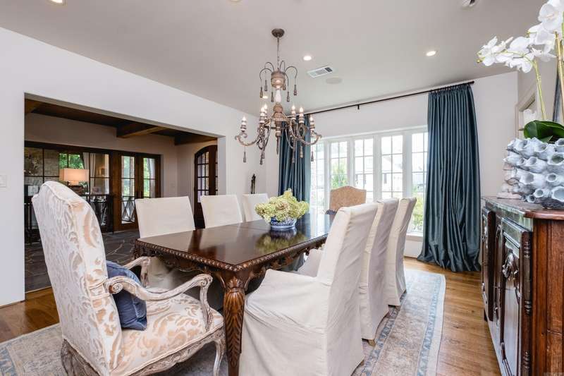 Stunning custom built estate home offering timeless design and modern comfort thru out. Featuring a rock and brick exterior, this residence is rich in character with natural stone and site finished hardwood floors, wood beamed ceilings, and warm, inviting spaces. The great room impresses with a soaring wood vaulted ceiling, wood burning fireplace, and a wall of French doors overlooking the backyard oasis. Formal and informal living areas showcase refined design and functionality. The gourmet kitchen is a showstopper with gorgeous counter space, high end appliances, and a spacious layout open to the hearth room, perfect for everyday living and entertaining. Step onto the covered back deck and enjoy views of the pool with waterfall, stone patio, and lush landscaping. A cozy screened in front patio with a wood burning fireplace extends the outdoor living. The luxurious primary suite includes a spa like bath and huge closet while upstairs offers a media/game room, guest suite, two additional bedrooms, full bath, cedar closet, and a dedicated study/work space. Oversized garages, greenhouse, and green features add to the value while blending beauty and practicality. Much more! Come see.