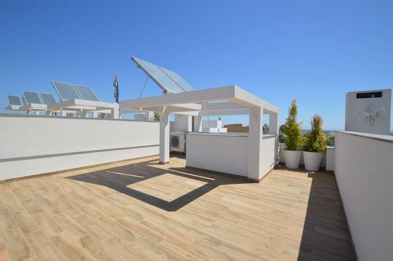 This exceptional three-bedroom villa, two of which are suites, is located in one of the most recent urbanizations in the municipality of Olhão, in Fuseta, with stunning views over the Ria Formosa. The villa is built to a high standard of quality and with all the comforts of modern design. The kitchen, fully equipped with modern, high-quality equipment, allows for carefree enjoyment of the open-plan space with the living room. Spacious rooms, with large windows to let in natural light, emphasize refinement without neglecting comfort. On the first floor there is a bedroom, which has direct access to the outside of the villa. The suites, located on the second floor, have a balcony from which to enjoy the views. From the living room, there is direct access to the outside, where there is a leisure area by the pool. On the top floor of the villa is a fantastic 45m2 rooftop, from where you can enjoy fantastic views over the Ria Formosa, and feel the tranquillity, peace and quality of life. The villa also has a garage for one car. With a privileged location, it is about 25 minutes from Faro Airport. CHARACTERISTICS:Area: 150 m2 | 1 615 sq ft Deployment Area: 93 m2 | 996 sq ft Building Area: 150 m2 | 1 615 sq ft Bedrooms: 3 Bathrooms: 3 Garage: 1 Energy efficiency: A+ FEATURES: 3 bedrooms Equipped kitchen Balcony Rooftop Garage Solar panels Air conditioning Armored door Video intercom