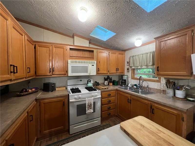 LOCATION, LOCATION, LOCATION! 2002 built mobile home on a beautiful treed lot. Oversized 2 car garage with separate space for all your yard and garden equipment or recreational toys. 3 bedrooms, spacious kitchen and living room, new roof, maintenance free deck, gutters and a large asphalt circle driveway. County living yet so close to town and easy access to the freeway.
