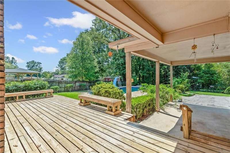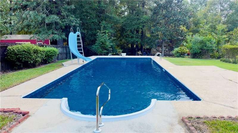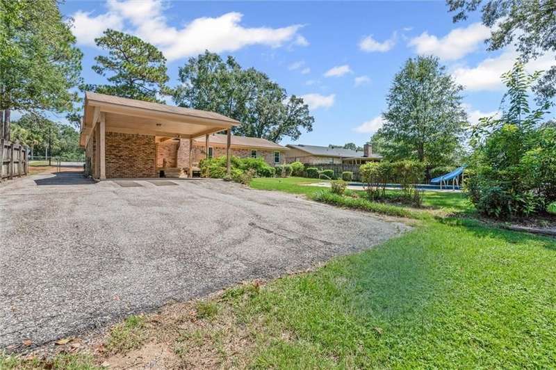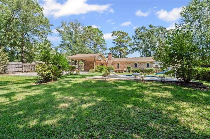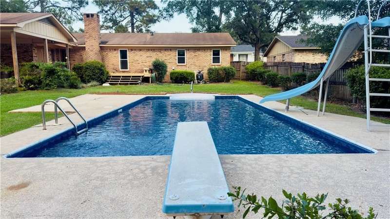 A HUGE sparkling pool is just one of the many things you will love about this home! Centrally located near everything in West Mobile, this beloved family home is ready for the next buyers to make it their own. Don't miss your chance to take advantage of the opportunity with this little gem. Priced to move, as to allow buyers to easily update the few items needed to truly make it their own special showplace. The pool is 16 x 38 with a very deep end, including diving board and slide. The indoor living area is massive with a wood burning fireplace and mantle. The living area paint has just been updated with SW Alabaster. Kitchen and laundry have lovely, well kept split brick flooring. Always a beloved classic. The breakfast/dining area has recently installed hand carved, engineered hardwood flooring. The kitchen refrigerator and dishwasher have been recently replaced within the past 2-3 years. HVAC system was installed in 2012, with full cleaning and servicing performed just last year. Hot water heater was installed in 2017. All original windows have also been replaced in the past few years. All exterior surfaces including sidewalks, front porch, double carport, deck , and pool area has just been cleaned and powerwashed. This home has a very large master bedroom with walk in closet, and his and hers separate vanities. It would take so little imagination and sweat equity to convert this home into the coziest, warmest home of your dreams. Then extend your living area into the fabulous backyard with the huge wood deck overlooking the gorgeous pool that you will enjoy each day almost through out the year with our moderate falls and springs. To enhance the outdoor experience, the double carport is adjacent to the pool area and open. To provide tons of extra space and cover when needed for those extra large gatherings. This is your shot to grab your own home in the always popular Carriage Hills. For a fabulous PRICE!!! Get it while it lasts! All measurements are deemed reliable, but buyer and their agent to verify.