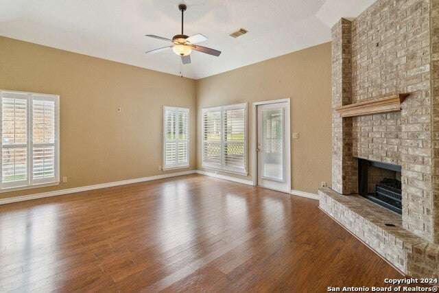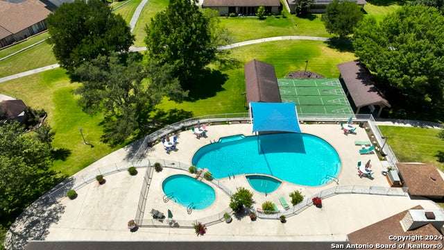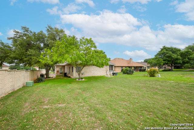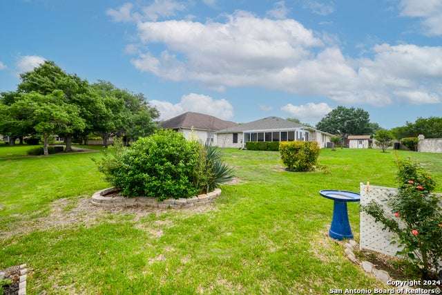 Arguably one of the best homes in this beautifully maintained, active 55+ community! Cul-de-sac lot on the most secluded street in the area, with LOTS of green space to enjoy. With neutral paint, updated cabinetry, granite countertops and Plantation Shutters throughout, this home is move-in ready. And all the floors are wood and ceramic tile. You'll have plenty of room to host friends and family with a formal dining and living area, large eat-in kitchen, and spacious family room with a fireplace. You will also enjoy the relaxing Florida room, and the added outdoor patio. The oversized garage has its very own golf cart entrance, and all of the cabinetry conveys. HOA fee includes 24 hour guarded entrance, lawn care with sprinkler system, and a 13,000 sq ft lodge that hosts a great variety of community activities. Get a glimpse of all the amenities included by visiting Scenic Hills TX . com. Live your best years in this beautiful home, with new friends and fun just waiting for your arrival!