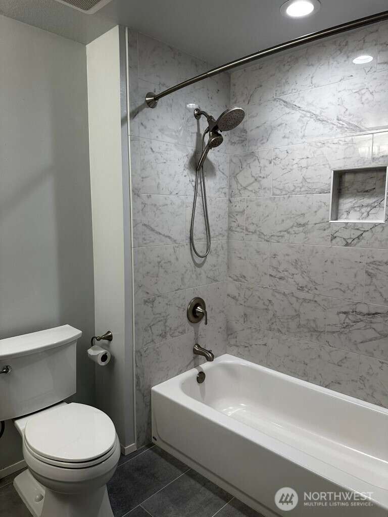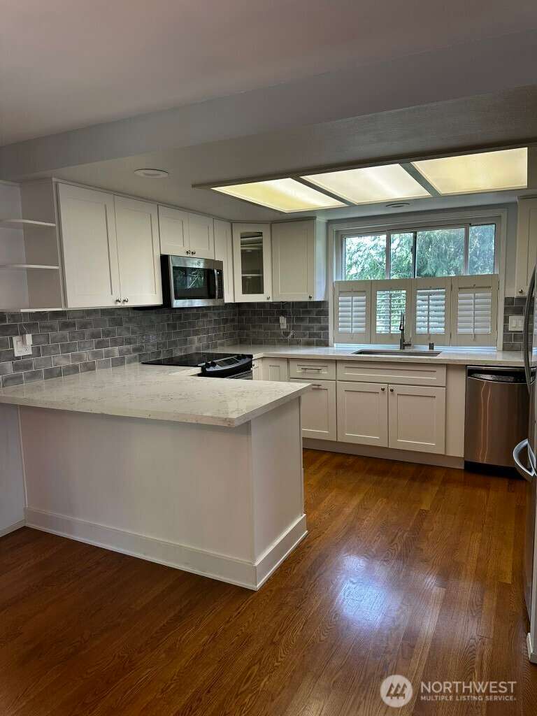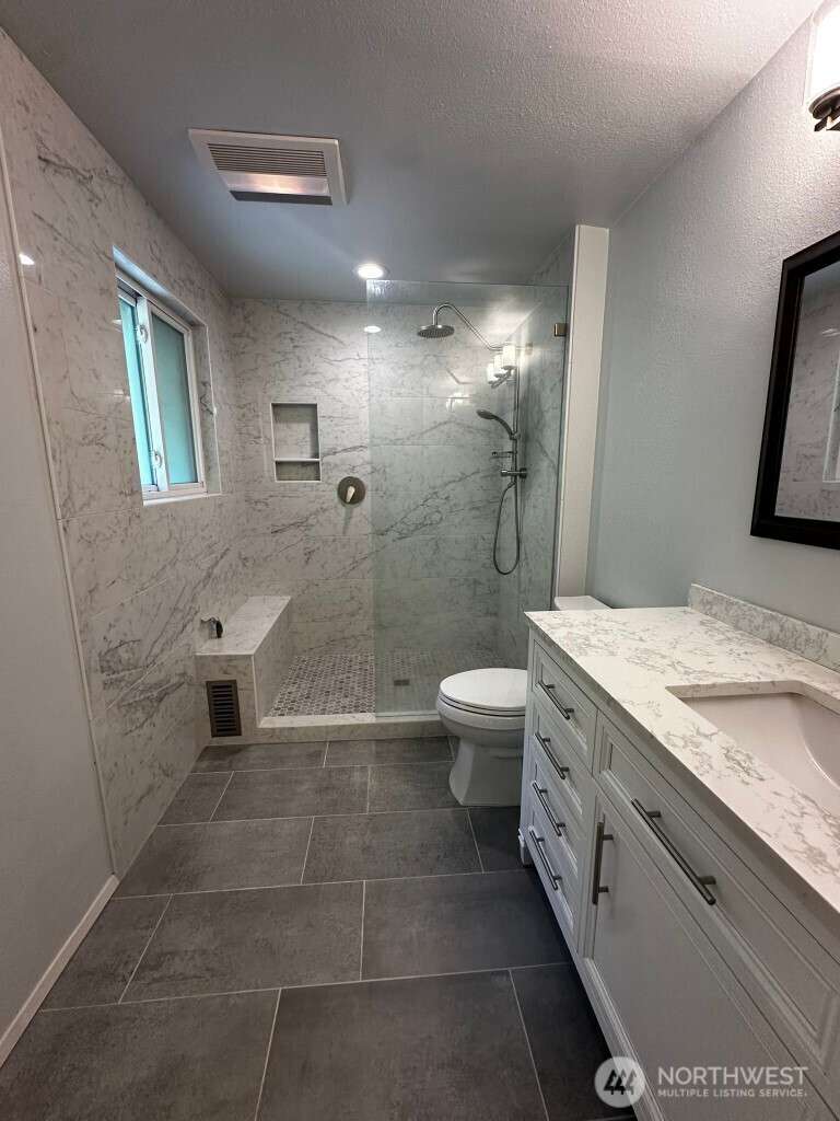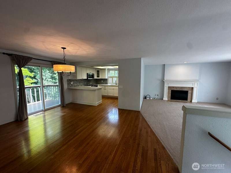 Available NOW! Meticulously maintained home in Timberline, situated on a greenbelt. Beautifully updated kitchen and bathrooms. Main floor has three bedrooms, kitchen with eating space and large living room with fireplace. Primary bedroom has balcony overlooking incredible landscaped backyard. Downstairs has large family/bonus room with fireplace and updated laundry room with half bath. Backyard has large multi-level deck, sprinkler system and large grassy area. Two car garage. Prime location with easy access to trails, parks, and Hwy 520 - just minutes to Redmond, Bellevue, and Seattle. Pets ok with additional $50/month.