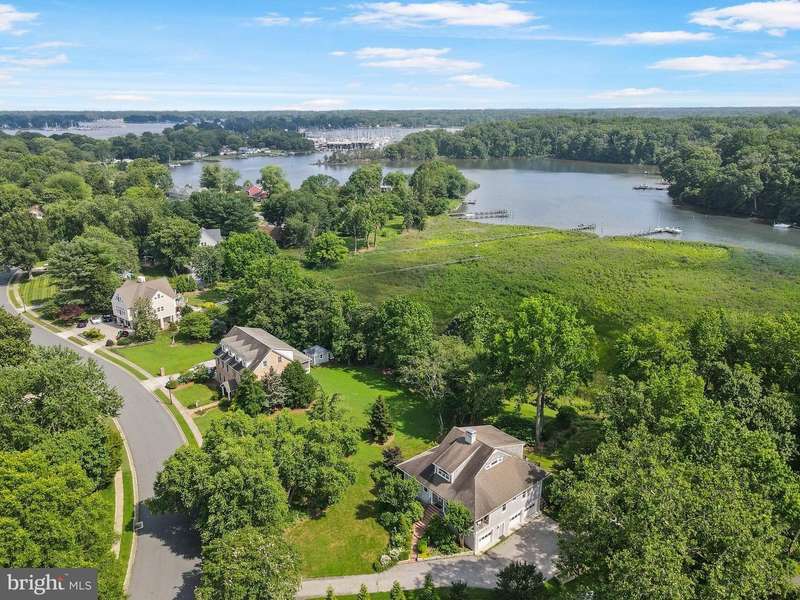 New Roof!! Custom designed, Nantucket-style home overlooking the natural beauty of Lerch Creek, just off the West River, in a serene waterfront setting with a beautifully landscaped yard. Home features cedar shake siding, a brick walkway, and a 3-car garage. Thoughtfully elevated to take full advantage of the views, the main living space is light-filled with wide plank Hickory floors and large windows framing the nature and river scenes. This home boasts custom craftsmanship and high-quality construction at every turn, including the metal interior railings and open tread stairs. The kitchen is outfitted with high-end appliances, including a Viking cooktop and Miele wall ovens, plus custom cabinetry, a spacious island with seating, and a generous walk-in pantry. The open living area features a wood stove and large sliding glass doors that lead to a generous deck overlooking Lerch Creek. Two bedrooms on the main level share a Jack and Jill bathroom. Upstairs, the private primary suite offers vaulted ceilings, a large walk-in closet, and a luxurious ensuite with a soaking tub, dual vanities, a large shower, and two water closets. Large windows show off the gorgeous views. The upper level also features laundry & a flexible sitting room or office space. The lower level includes the 3-car garage and over 900 sq ft of unfinished space with high ceilings, windows, and a sliding door, perfect for a workshop, hobbies, or future finished space. The 2.85 acres lot offers 260 feet of riparian waterfront with the potential to add a pier. Home sits outside of the flood zone. Relax on the deck while watching ospreys, eagles, and other wildlife in this peaceful, natural setting. Located in the sought-after, water-oriented community of Galesville, with access to pickleball courts, walking paths, a playground, and a fishing pier with a small beach (no HOA). Walk to two waterfront restaurants and marinas in town. There are memberships available at West River Sailing Club and the waterfront pool at West River Yacht Harbor. Centrally located, 25 minutes to Annapolis, 45 minutes to Washington DC, Baltimore & major airports.