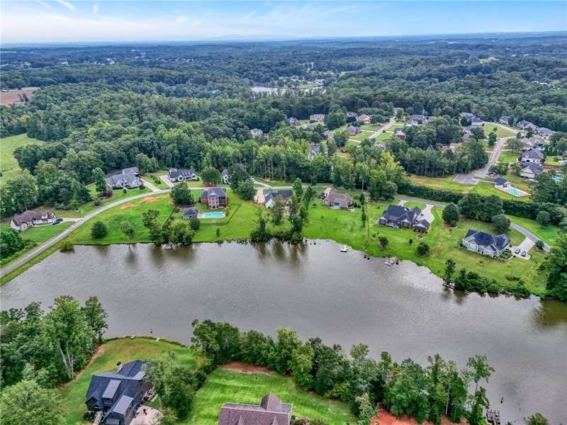 Nestled along the shores of Crawford Lake in Powdersville, this home has the charm of a modern farmhouse wrapped in the serenity of a lakefront retreat. The white concrete plank siding with board and batten accents gives it that timeless appeal, the kind that makes you feel like you've found the place you've always been meant to call home. Step inside and the two story foyer greets you with light and space. Just off the entry is a large dining room, perfectly placed for gatherings that grow even more special as the holidays approach. You can almost picture a long table filled with friends, family, and laughter. From here the heart of the home unfolds into the kitchen and family room, where life naturally gathers. The kitchen is as functional as it is beautiful. A long island stretches wide, ideal for spreading out holiday treats or evening homework while dinner simmers. The granite counters are stunning, each slab carefully chosen. A lovely hood crowns the stove, and the farmhouse sink feels right at home here. The thoughtful choice to avoid surrounding the sink with upper cabinets makes the space feel open and airy, as if the room breathes with you. The oversized pantry is a dream, ready to swallow up every crockpot, snack, and oversized platter you could possibly own. The family room is generous in size, anchored by a brick fireplace with gas logs that set the tone for cozy evenings. Wide windows draw your gaze to the lake just beyond, where the water shimmers in every season. Step outside and the living space continues. A covered deck makes for shady afternoons while a sprawling patio below becomes the hub for barbecues, stargazing, or simply a quiet evening by the water. The fenced yard gives kids their own place to run and play, yet just beyond the fence the lake stretches, a constant reminder of the rare beauty of this setting. Back inside, the home is designed mostly on one level. The primary suite is split from the guest rooms, creating a retreat of its own. Here too, large windows frame the lake view. The bath is well appointed with double sinks, a walk in shower, and a closet so spacious it feels like its own room. Just beside this suite sits a versatile space the seller uses as a gun room and office, a feature that adds both practicality and a touch of personality. The laundry room is oversized as well, ready for big appliances and storage that actually works. The guest bedrooms are tucked away on the other side of the home, connected by a jack and Jill bath that features its own farmhouse style sink. Each bedroom is bright and cheerful, designed with care and ample closet space. Upstairs you'll find another guest room and a nicely sized bonus room. Large windows flood these spaces with natural light, and plumbing is already in place for a future bath should you decide to expand. Outside, the level lot is beautifully landscaped, adding polish to the natural setting. Living on Crawford Lake in Powdersville is not something that comes available often, and this home captures the dream perfectly. The community dock opens the door to fishing, canoeing, or simply drifting across the water at your own pace. The location is just as special as the home itself. Wren schools are known for their strong sense of community and tradition, and this address puts you right in the heart of it. Yet you are also just minutes from Greenville, Anderson, or Easley, giving you the best of both convenience and retreat. This is more than a house on the lake. It is a story waiting to be lived, where farmhouse charm meets the stillness of water and the joy of community, all in one rare and beautiful setting.