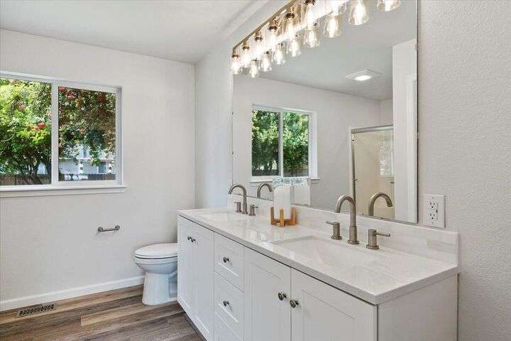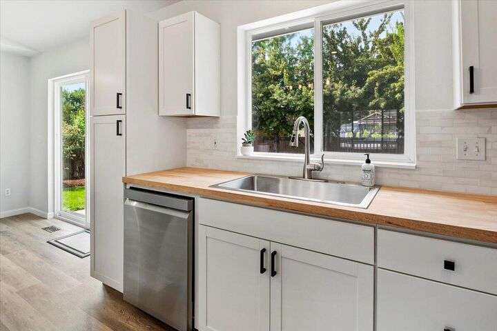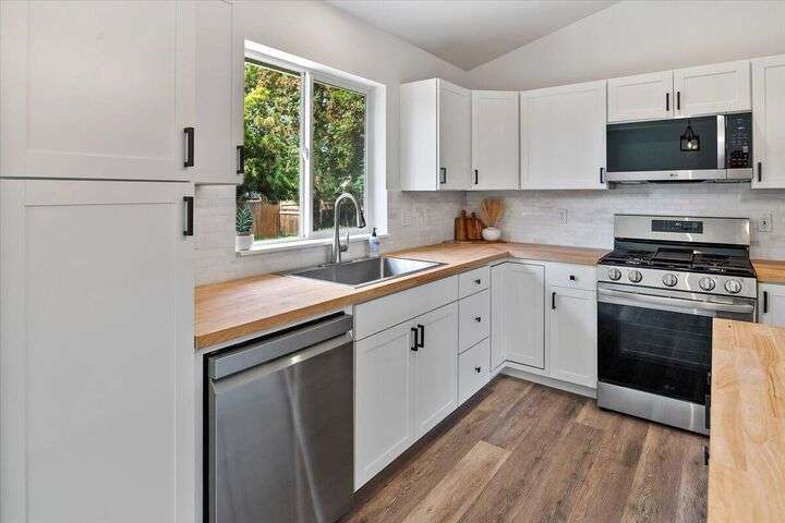 Completely remodeled single-level home on a generous lot in a quiet, established neighborhood. Updates include fresh interior and exterior paint, new cabinets, luxury vinyl plank flooring, plush carpet in the bedrooms, and updated light fixtures. The kitchen is outfitted with top-of-the-line LG appliances, while vaulted ceilings in the living area and abundant natural light create an open, inviting feel. Outside, enjoy a private backyard with mature trees.