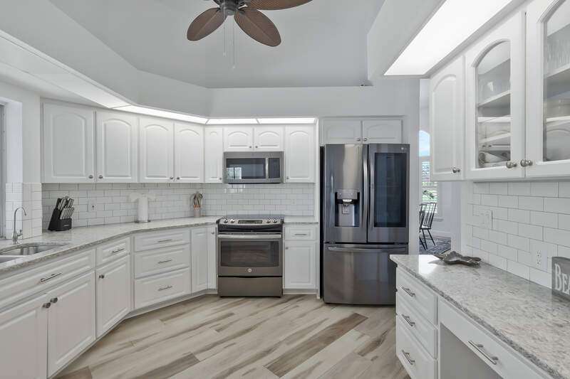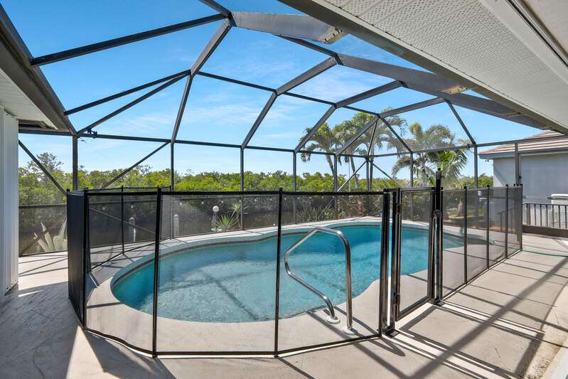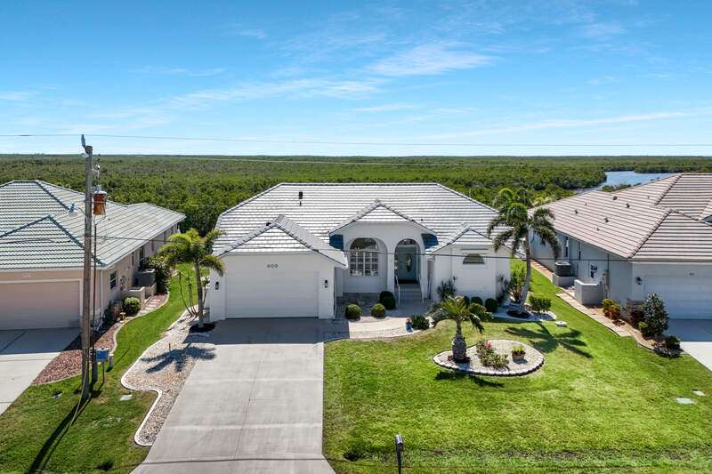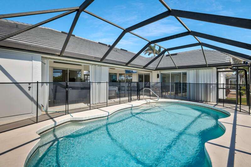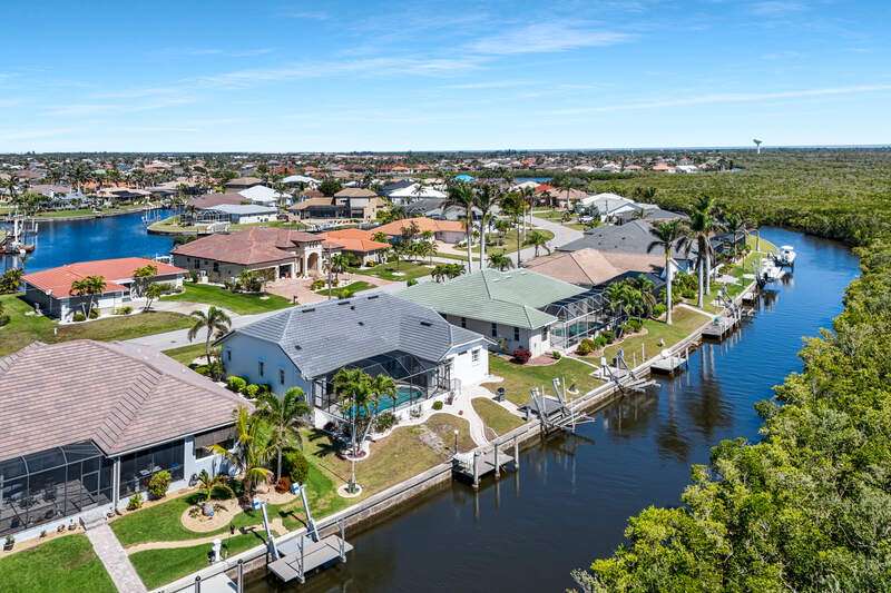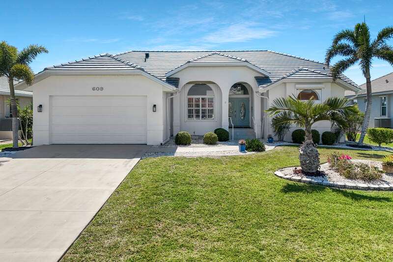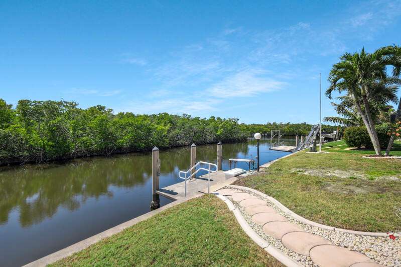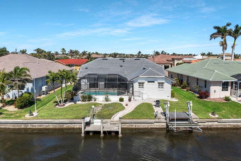 Welcome to this exceptional waterfront Punta Gorda Isles property in Punta Gorda, Florida. With a stunning canal view and beautifully landscaped yard, this three bedroom, two and bath home invites you to experience the best of Florida living. The screen-enclosed heated pool is the perfect spot to relax and unwind, adding to the allure of this pristine oasis. In this well-maintained home, you will find upgrades of stainless-steel appliances and a water softener with reverse osmosis system, which elevates this light and bright kitchen, while high ceilings and luxury laminate flooring create an elegant, spacious ambiance throughout. Recent renovations include a new roof in 2024, as well as new Trex decking around one of the two boat docks: one dock with a lift and one with room for a fish cleaning station. This beautiful home is great for entertaining with ample room inside and out. The pool bath and the pass-through bar with a large window from the kitchen to the lanai, creates easy access to your guest. Enjoy the added luxury of plantation shutters, security system, in-ground sprinklers, a generator, electric roll-down shutters and the removable child proof safety pool fence, ensures peace of mind and easy maintenance. Several nearby golf courses including Twin Isles Country Club which is 4 minutes away. The convenient location near Fisherman's Village and Downtown Punta Gorda adds to the appeal, making this home a true gem in every sense. Don't miss out on this opportunity to experience the best of Florida living as you move right into this amazing turnkey-furnished home in this Southwest Florida Paradise!