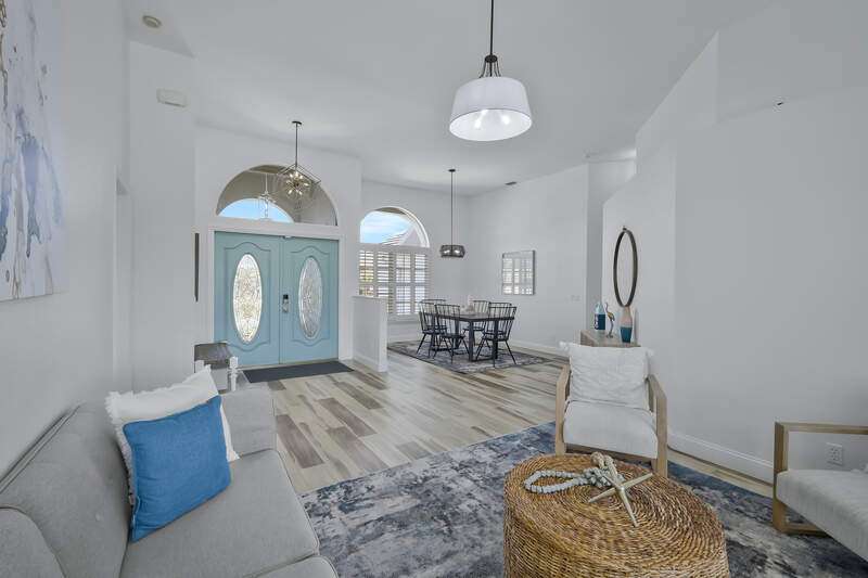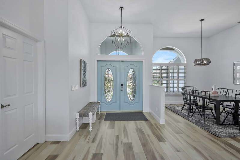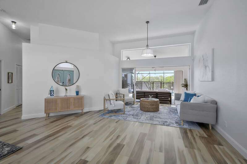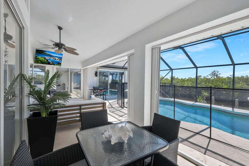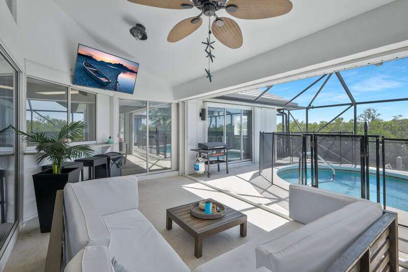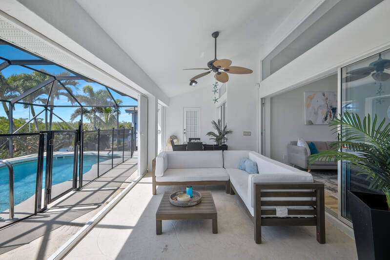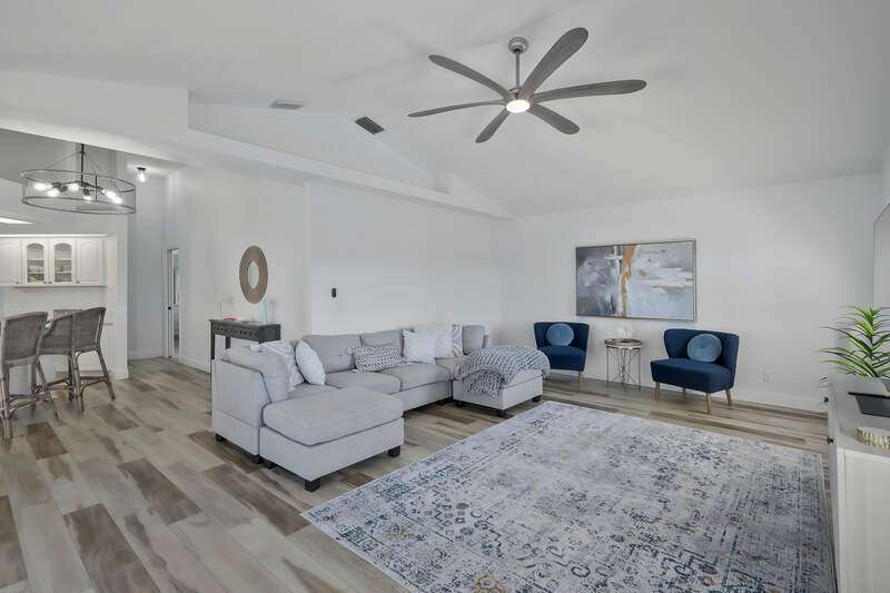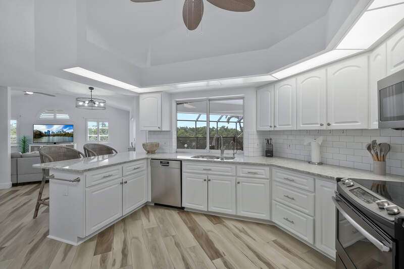 Welcome to this exceptional waterfront Punta Gorda Isles property in Punta Gorda, Florida. With a stunning canal view and beautifully landscaped yard, this three bedroom, two and bath home invites you to experience the best of Florida living. The screen-enclosed heated pool is the perfect spot to relax and unwind, adding to the allure of this pristine oasis. In this well-maintained home, you will find upgrades of stainless-steel appliances and a water softener with reverse osmosis system, which elevates this light and bright kitchen, while high ceilings and luxury laminate flooring create an elegant, spacious ambiance throughout. Recent renovations include a new roof in 2024, as well as new Trex decking around one of the two boat docks: one dock with a lift and one with room for a fish cleaning station. This beautiful home is great for entertaining with ample room inside and out. The pool bath and the pass-through bar with a large window from the kitchen to the lanai, creates easy access to your guest. Enjoy the added luxury of plantation shutters, security system, in-ground sprinklers, a generator, electric roll-down shutters and the removable child proof safety pool fence, ensures peace of mind and easy maintenance. Several nearby golf courses including Twin Isles Country Club which is 4 minutes away. The convenient location near Fisherman's Village and Downtown Punta Gorda adds to the appeal, making this home a true gem in every sense. Don't miss out on this opportunity to experience the best of Florida living as you move right into this amazing turnkey-furnished home in this Southwest Florida Paradise!