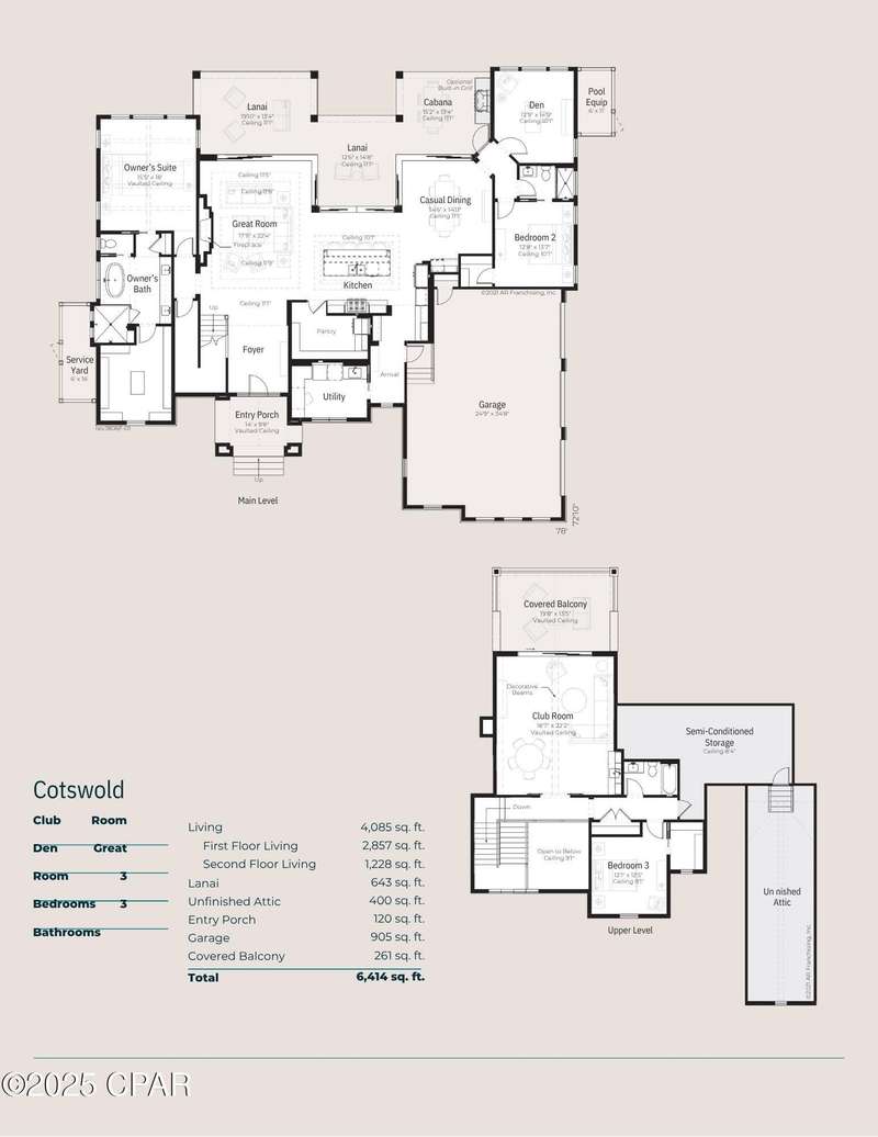 Experience timeless elegance and modern comfort in the English Country-inspired Cotswold. This thoughtfully designed 2-story home offers 3,732 square feet of living space, perfectly blending everyday functionality with luxurious details.Featuring 3 spacious bedrooms, 3 full bathrooms, a private den, and a stylish club room with balcony and wet bar, this home is ideal for both relaxing and entertaining. The open-concept living area seamlessly connects to the outdoors through two impressive 90-degree sliding glass doors, creating a true indoor-outdoor experience year-round.The owner's suite is a serene retreat, complete with a spa-like bathroom offering a soaking tub, oversized shower, and generous walk-in closet. Enjoy the convenience of an oversized storage area and easy second-story access. A 3-car garage provides ample room for vehicles and storage.Whether you're working from home, hosting guests, or simply unwinding, the Cotswold delivers comfort, character, and smart design at every turn.Customize and build this home or choose one from our collection. Clarifications:-No fill dirt, clearing, additional foundation or lot preparation is included. It's an additional expense. The sale of the lot is a separate transaction.Pool/outdoor living and outdoor kitchen are optional, they are not included in the base price.