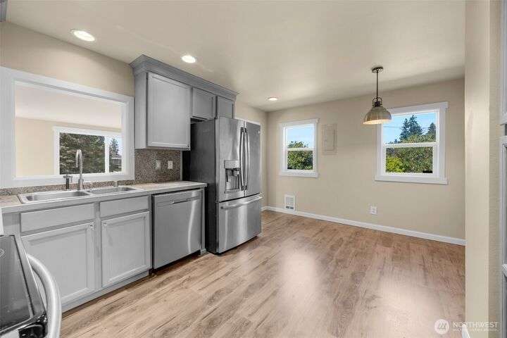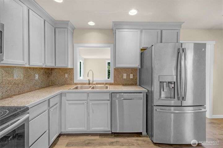 Charming Rambler with Stunning Views in Fobes Hill! Welcome to this delightful home nestled in the desirable Fobes Hill community of Snohomish. Situated on a spacious, fully fenced 12,000+ sq ft lot, this property offers sweeping territorial and city views. Inside, you'll find a comfortable single-level layout featuring 2 bedrooms, a cozy family room, and a separate living room. Kitchen has been updated to include stainless appliances. Step outside onto the large deck, ideal for entertaining or perfect for relaxing. Additional highlights include a garage/shop and outbuilding. Located within the Snohomish School District. A rare find offering both privacy and convenience — don't miss the opportunity to make this charming home yours!