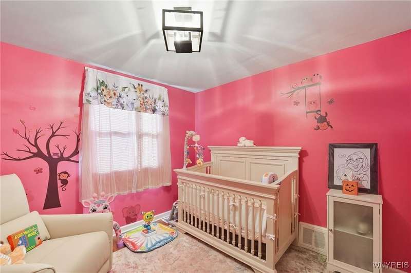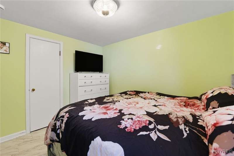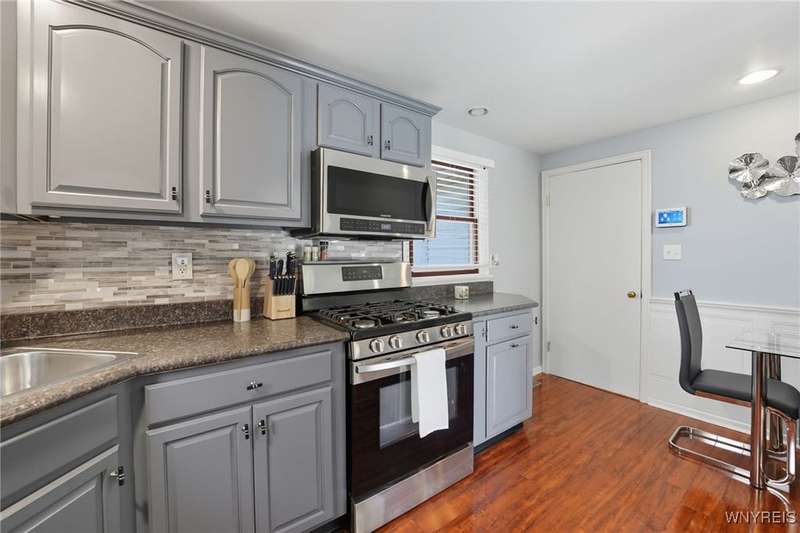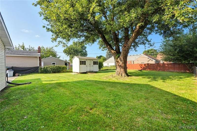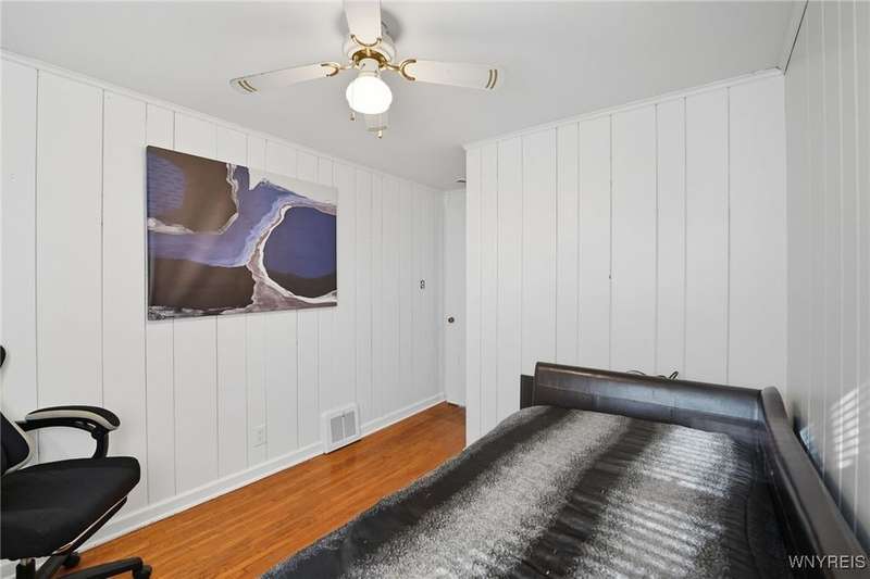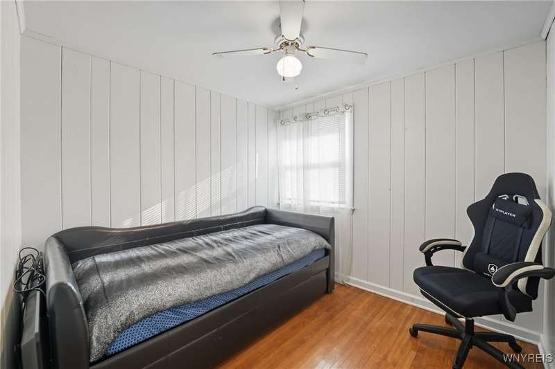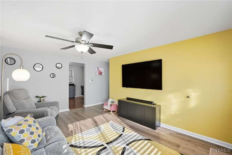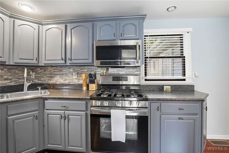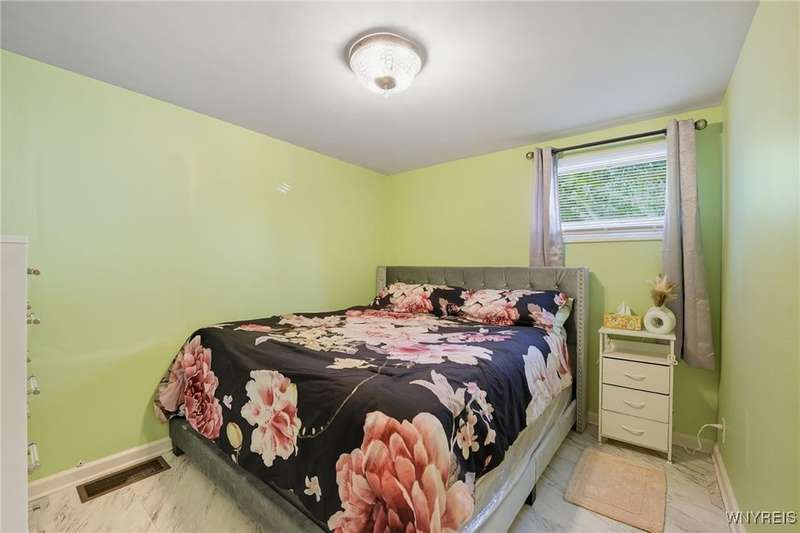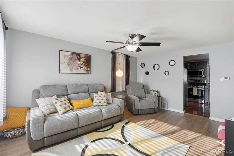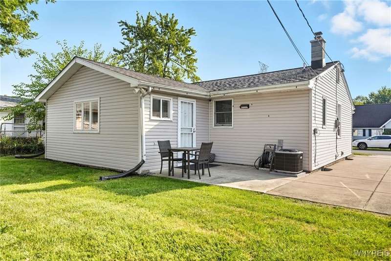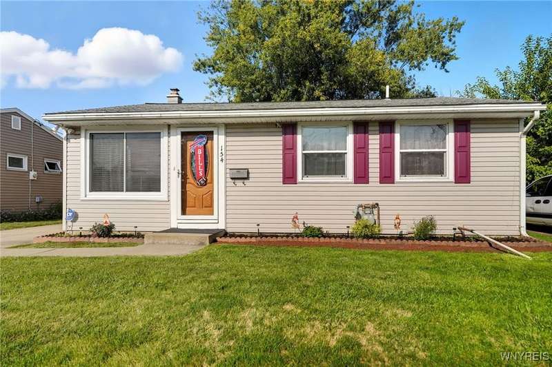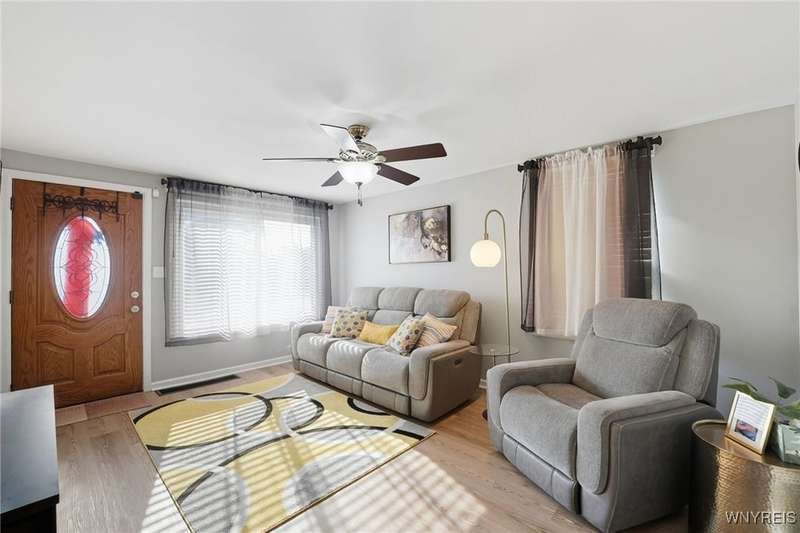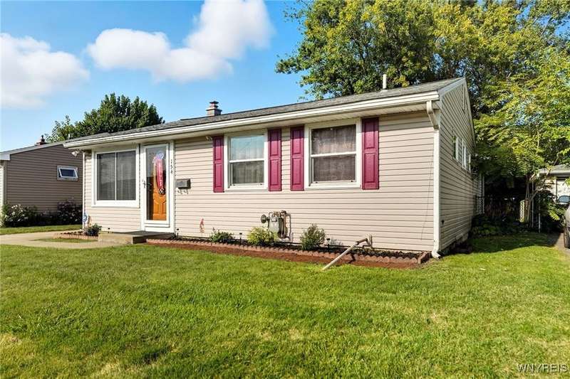 Charming ranch featuring three bedrooms, including two with beautiful hardwood floors. The bright and cheery living room is filled with natural sunlight, creating a warm and inviting atmosphere. Recent updates include brand-new central air, a new furnace, and replacement windows for comfort and efficiency. The home offers a spacious eat-in kitchen and includes all kitchen appliances. The bathroom was completely renovated within the last year including new floors, toilet, sink and more! Enjoy the 19' x 10' three-season room, perfect for relaxing or entertaining, with direct access to a patio and large backyard. Freshly painted and move-in ready! Conveniently located near expressways, schools, shopping, and restaurants.
