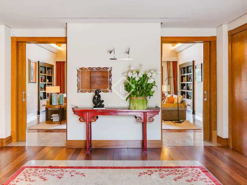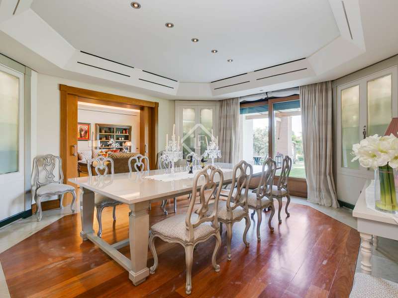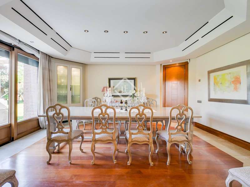 We are proud to present one of the most extraordinary luxury residences in La Moraleja, Madrid. This exceptional estate spans over 1,400 m² and is the work of renowned architect Marcos Sainz, with refined interior design by Paco Terán. Both creators have brought together the finest materials available, emphasizing natural elements such as stone and wood to craft a home that is as stunning as it is welcoming. The villa is truly breathtaking, blending timeless elegance, stately charm, and sophisticated taste. It features expansive reception areas, serene relaxation spaces including a private indoor pool, sauna, and gym, as well as beautifully appointed lounges and play areas, perfect for entertaining family and guests year-round. Set on a magnificent one-hectare plot, the property is surrounded by mature trees and professionally landscaped gardens. Outdoor highlights include a large Munich-style swimming pool, a barbecue area with a charming gazebo, and a private padel court, offering the perfect environment for leisure and entertainment in every season. Please contact us for further information.