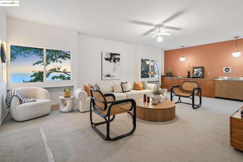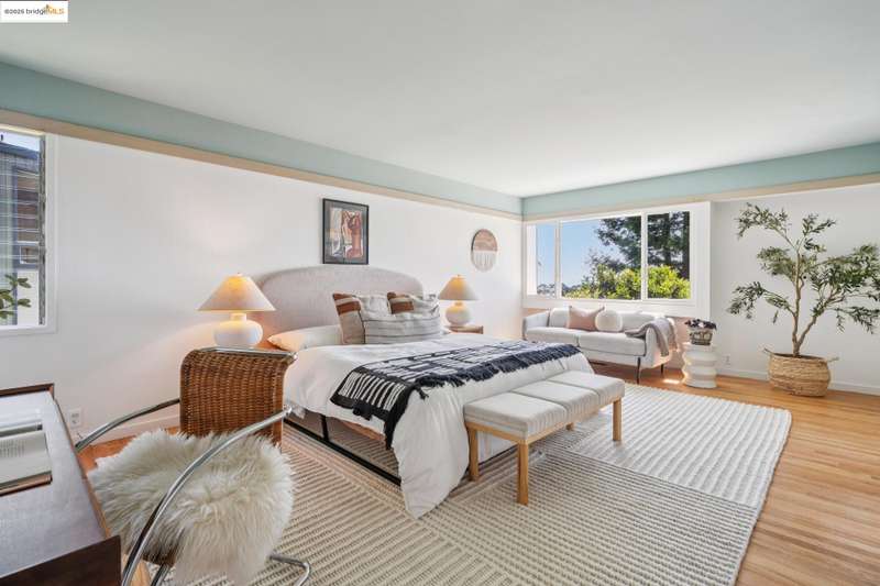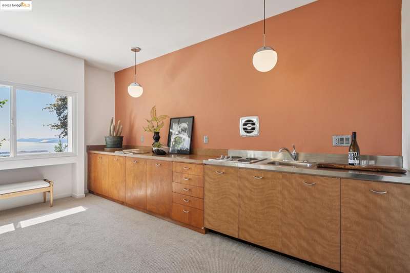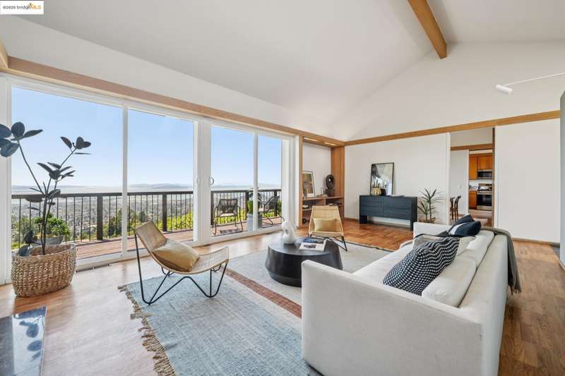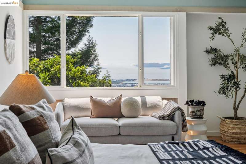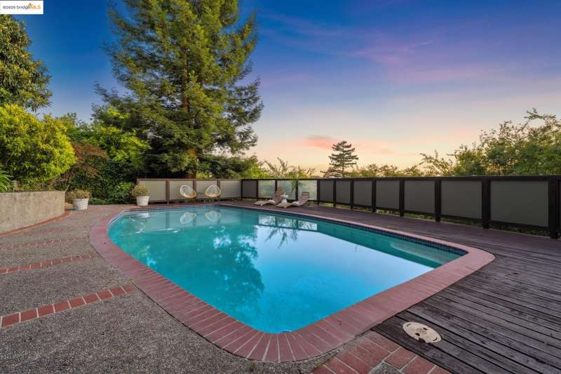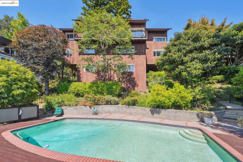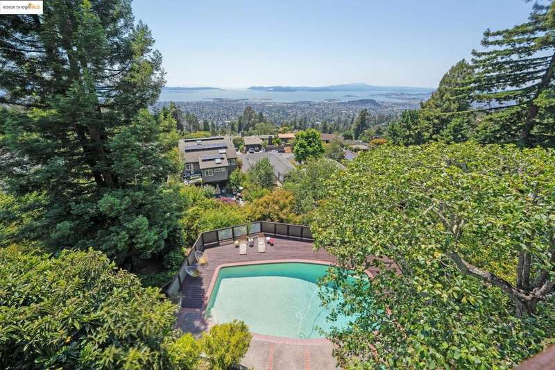 Mid-century with luscious lifestyle; views from all bdrms, living rooms, dining room, & kitchen. Generous great rooms, decks to view, and a pristine pool to vacation at home. Rarely does a home of this style and size come to market. This California home has had only 1 owner. Are you ready to be the next? Tucked on a special street, this home embraces stunning views of the western skyline, SF, Golden Gate Bridge, and the brilliant Bay Area. The rooms are appoint the beauty of life, sit and view the Bay or enjoy the many outdoor spaces. Enjoy a dip in the starlit pool, also with views, and for your convenience, there’s a changing room with a shower. Discover inspiration on overlooking the vast garden, and find magic in your exchanges with nature. With 4+ bedrooms, an office, and 3.5 bathrooms, this home offers 3 levels with 4000+ sq ft* of artistry. The kitchen: it’s hard to do the dishes when you can’t stop viewing the Golden Gate Bridge. 2 refrigerators, pantry, & eat-in kitchen. Expansive living;capturing places to retreat, work, socialize, or relax. 2 car garage. Located in the North Berkeley Hills, embraced by Tilden Park trails, Solano Avenue, N. Berkeley and College Avenue shops & restaurants are just minutes away. Transparent price. *sqft pub. recrd