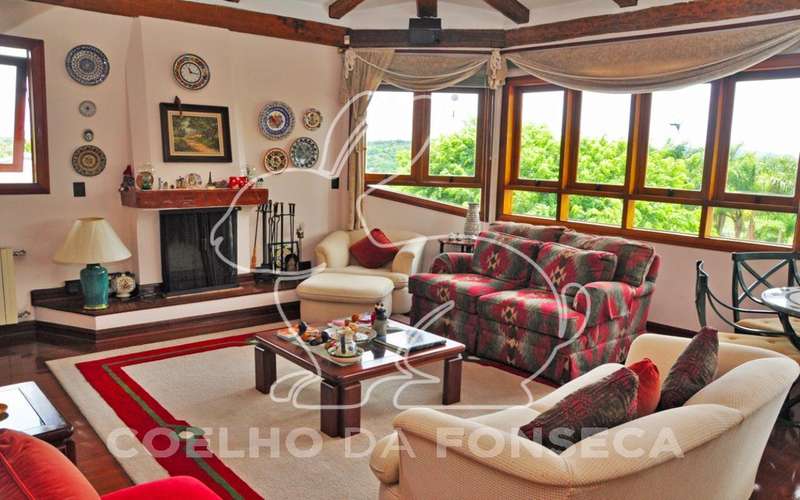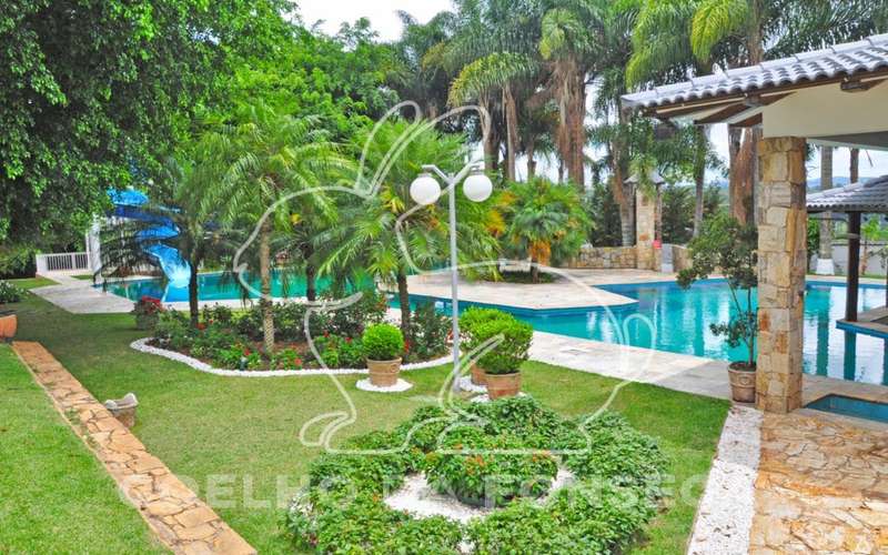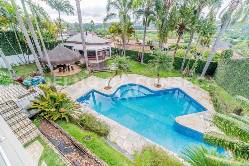 Casa de altíssimo padrão com 2060 m² de construção. Dentro de uma área de 9 lotes que forma 9.800 m², área de lazer completa,com amplo salão com churrasqueira, forno, cozinha de apoio, piscina com tobogã, quadra de tênis, pista do COOPER, pomar, dependência de hóspedes tipo chalé, toda cercada com muros altos, vista panorâmica, e várias dependências específicas, etc. Vale a pena conhecer.