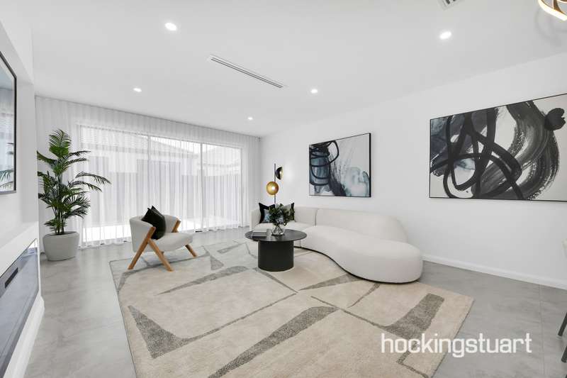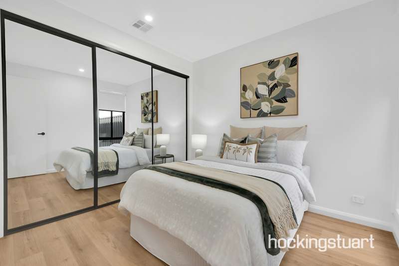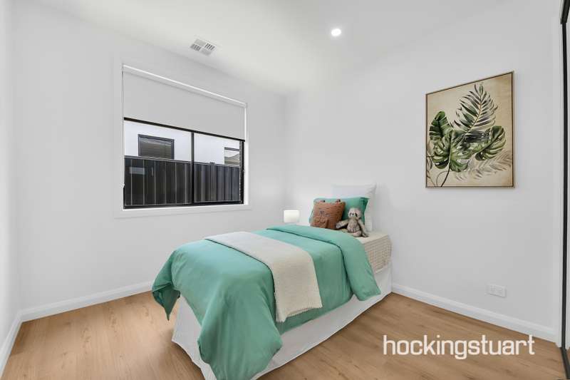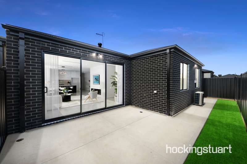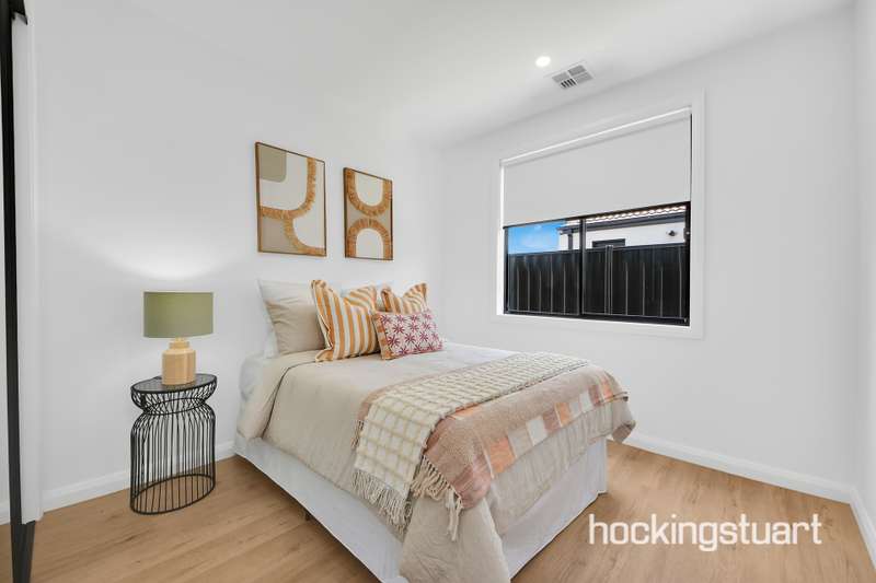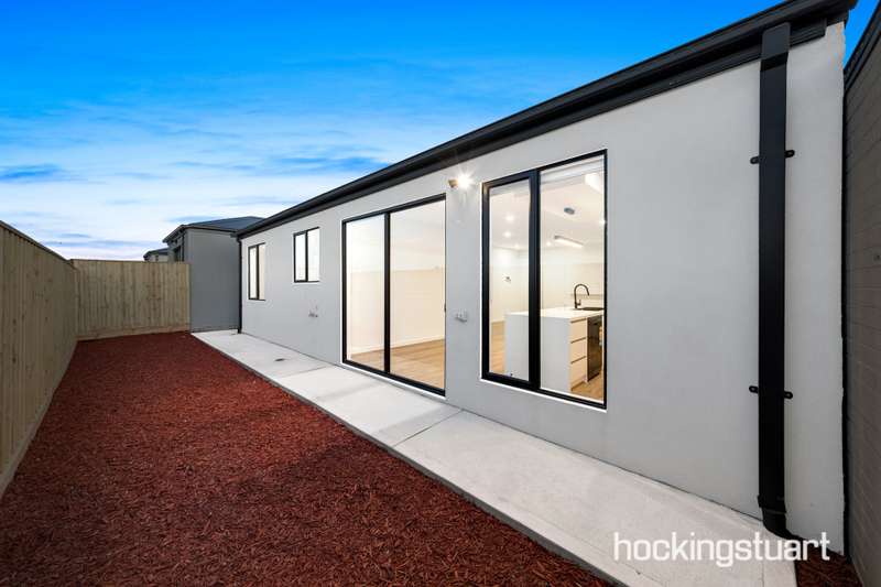 Embrace the perfect blend of style and comfort with this beautifully designed home, ideal for first-time buyers and astute investors. Thoughtfully crafted with modern living in mind, this delightful residence offers three well-appointed bedrooms, delivering effortless convenience in a welcoming setting. Step inside and be greeted by the warmth of elegant floorboards, leading you through the inviting open-plan living, dining, and kitchen area. Designed with practicality and charm, this space is perfect for both relaxed evenings and entertaining guests, complemented by quality finishes that enhance its contemporary appeal. Stay comfortable year-round with refrigerated heating and cooling, ensuring the perfect temperature no matter the season. The master bedroom is a peaceful retreat, complete with a walk-in robe and a stylish ensuite featuring a vanity for added luxury. The additional bedrooms, each fitted with built-in robes, provide cozy and functional spaces for family or guests. A well-equipped laundry adds everyday convenience, offering easy outdoor access to a compact yet low-maintenance outdoor space-ideal for quiet moments of fresh air. Situated in a highly sought-after location, this home is just moments from Edgars Creek Primary and Secondary Schools, making school drop-offs a breeze. Nearby, Aurora Village offers a vibrant selection of shops, cafés, a medical center and fitness facilities, ensuring all your lifestyle needs are met. With easy access to the Hume Freeway for a stress-free commute, plus a dedicated parking space, this charming modern home is a wonderful opportunity not to be missed. Contact Love Sharma 0430 534 802