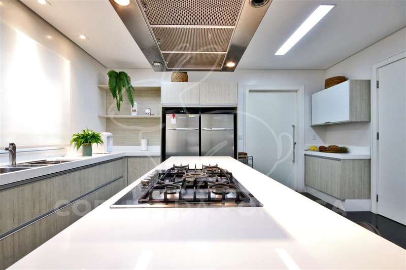 Excelente imóvel com projeto que valoriza o terreno de 1000 m², plano, de esquina e em frente a uma praça. Construído com materiais nobres e decorado com muito bom gosto está repleto de armários de ótima qualidade. Possui ar condicionado em todos os ambientes, iluminação em Led, aspiração central, aquecimento solar e piscina climatizada.