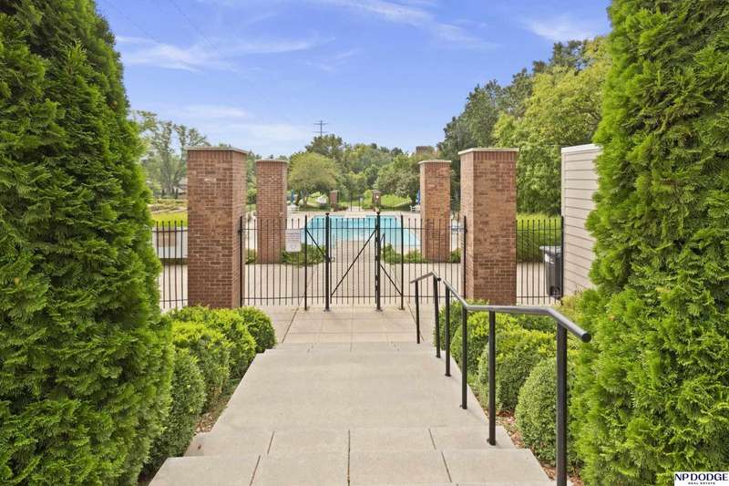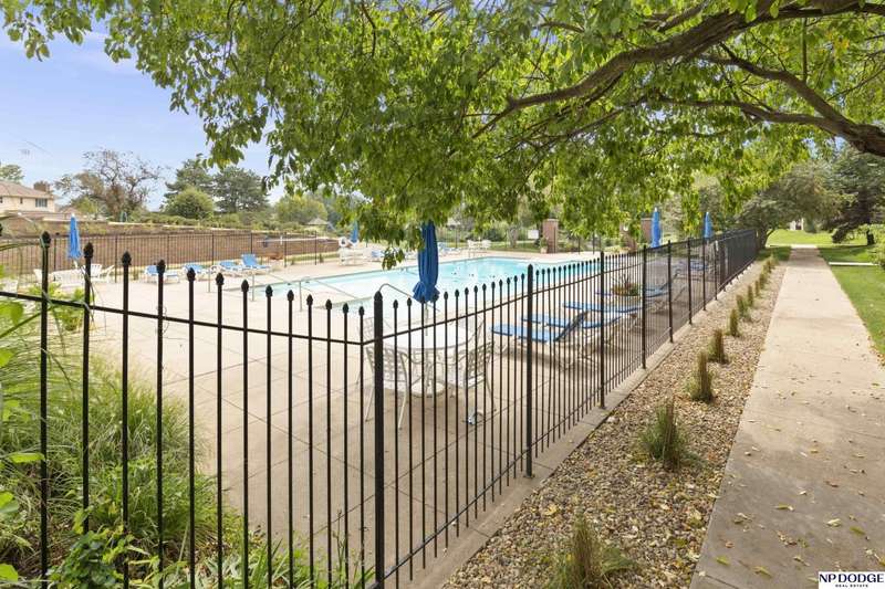 Welcome to West Fairacres Village, a gated community! This award-winning ranch features an open floor plan with soaring 17'6 vaulted ceilings. The spacious primary suite offers deck access overlooking the pool, double closets, and a full bath. Two additional bedrooms include vaulted ceilings, built-ins, and generous closets. The lower level is designed for entertaining with a huge rec room, theater system, and game tables (all convey), plus a shop area for hobbies and storage. Recent upgrades: NEW carpet (2025), NEW HVAC (2025), heated kitchen floor, tankless H2O heater, and water softener. Prime Omaha location just minutes from Dodge Expressway for easy city access. HOA $180/mo covers snow removal, lawn care, and pool access.