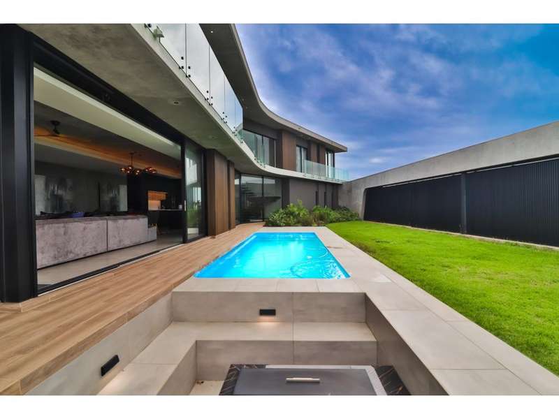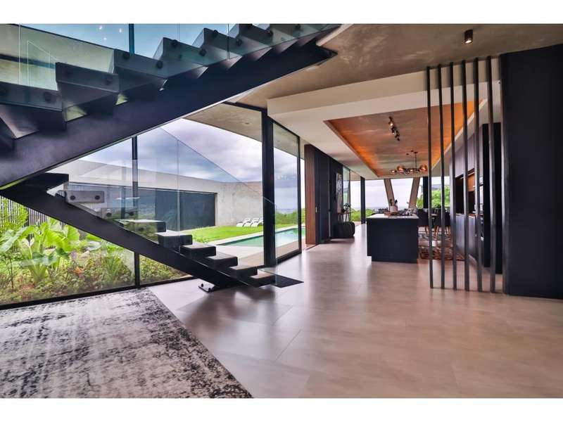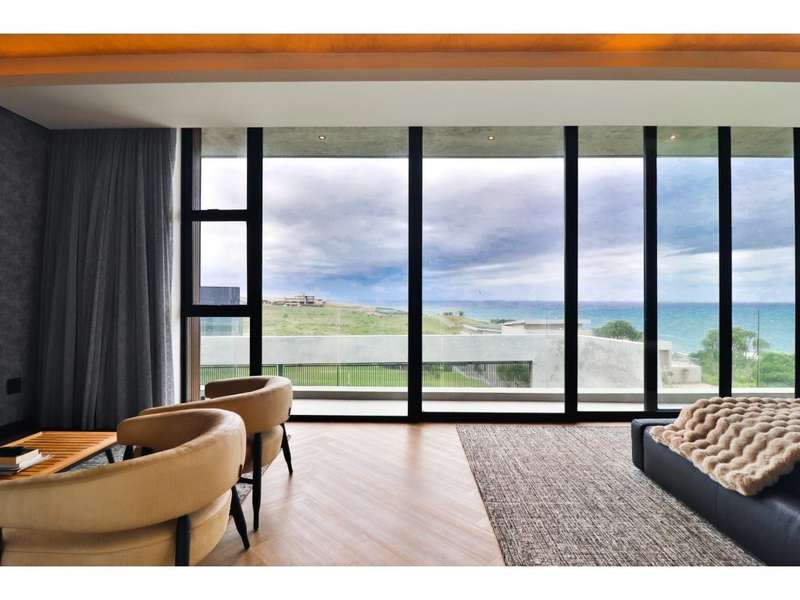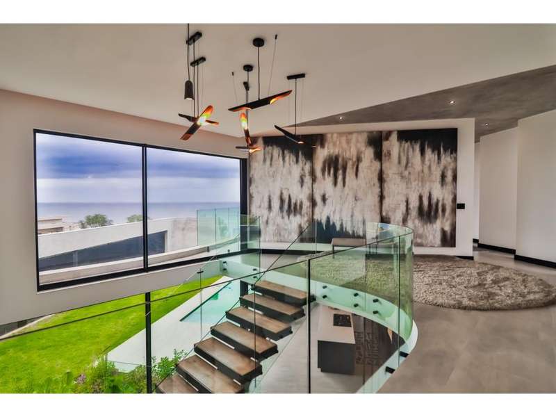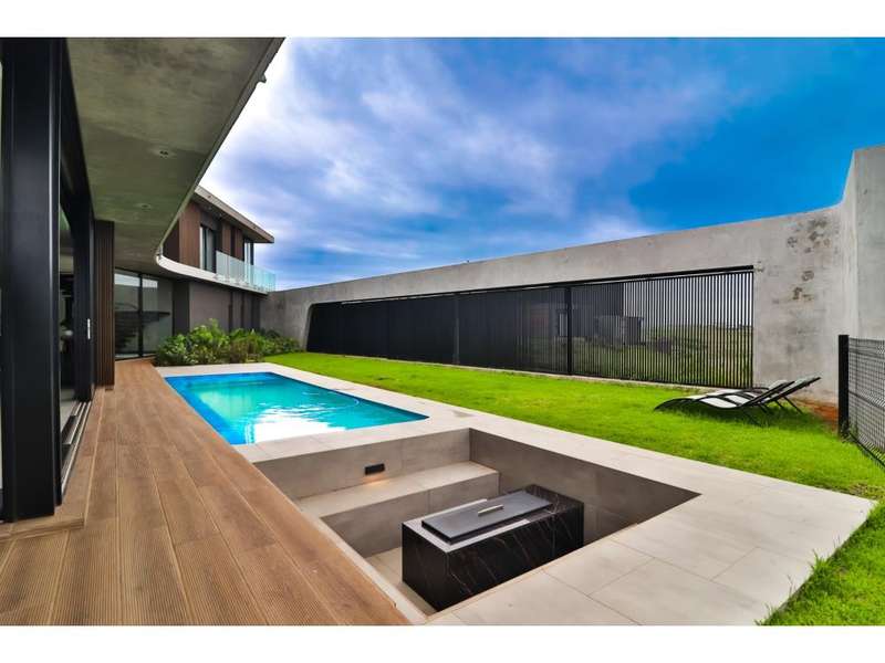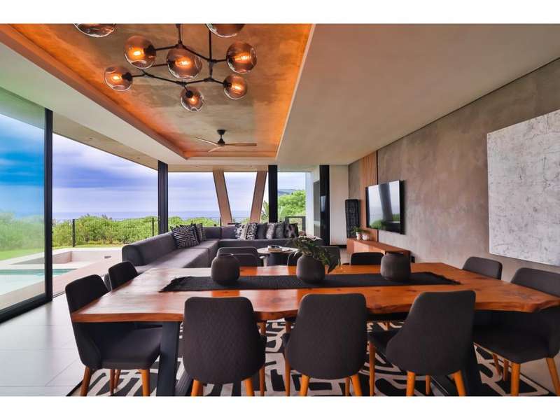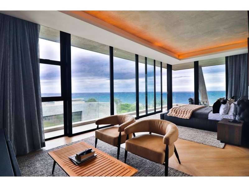 Perched in the prestigious Mont Clam Oceanside Estate in Sheffield Beach, this newly completed modern masterpiece offers the ultimate in luxury coastal living. Boasting the finest finishes throughout, the home captures breathtaking panoramic sea views from every angle. The striking architectural design seamlessly blends elegance and functionality, creating a haven of sophistication and comfort. The lower level is an entertainer?ÇÖs dream, featuring an open-plan kitchen and dining area that flow effortlessly into a spectacular living space. Expansive glass doors open to a lush garden, complete with a sparkling pool and fire pit, perfect for relaxation and social gatherings. A covered patio features a built in braai, and a triple garage adds convenience and security, completing this remarkable coastal home. Upstairs, four generously sized bedrooms await, each with its own en-suite bathroom, offering uninterrupted ocean vistas and access to private balconies. Natural light floods the interiors, enhancing through cleverly angled walls, a great sense of space and tranquility. Thoughtfully designed for modern living, the home ensures every detail is meticulously crafted to the highest standards. Full access to all Zululami and Seaton facilities, including private beach access, beach club, sports pavilions and more