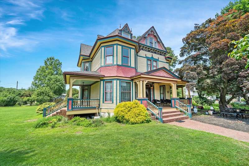 Welcome to 138 Adams Street, located on just under ¼ of an acre in beautiful Delaware City. This two-story Queen Anne is listed in the National Register of Historic Places and is situated on a quiet street just a few blocks from the Delaware River. The interior features original hardwood floors, intricate stained-glass windows, and original decorative woodwork throughout. The sitting room features original solid wood pocket doors and a wood-burning fireplace, and is currently being used as a first-floor bedroom. The first floor has a spacious foyer with a grand staircase and a powder room tucked underneath. The kitchen has a gas range and an additional pantry or breakfast room between the kitchen and the dining room. There are four spacious bedrooms at the second floor, as well as a full bath with claw foot tub, and a large laundry room that could be converted into an additional ensuite bath. The exterior features a wraparound porch with hand carved wooden spindles and ceiling fan, an additional side porch, and a Grand Manor asphalt roof. This historic home is a great find in a very desirable location, and perfect to put your own personal touch!
